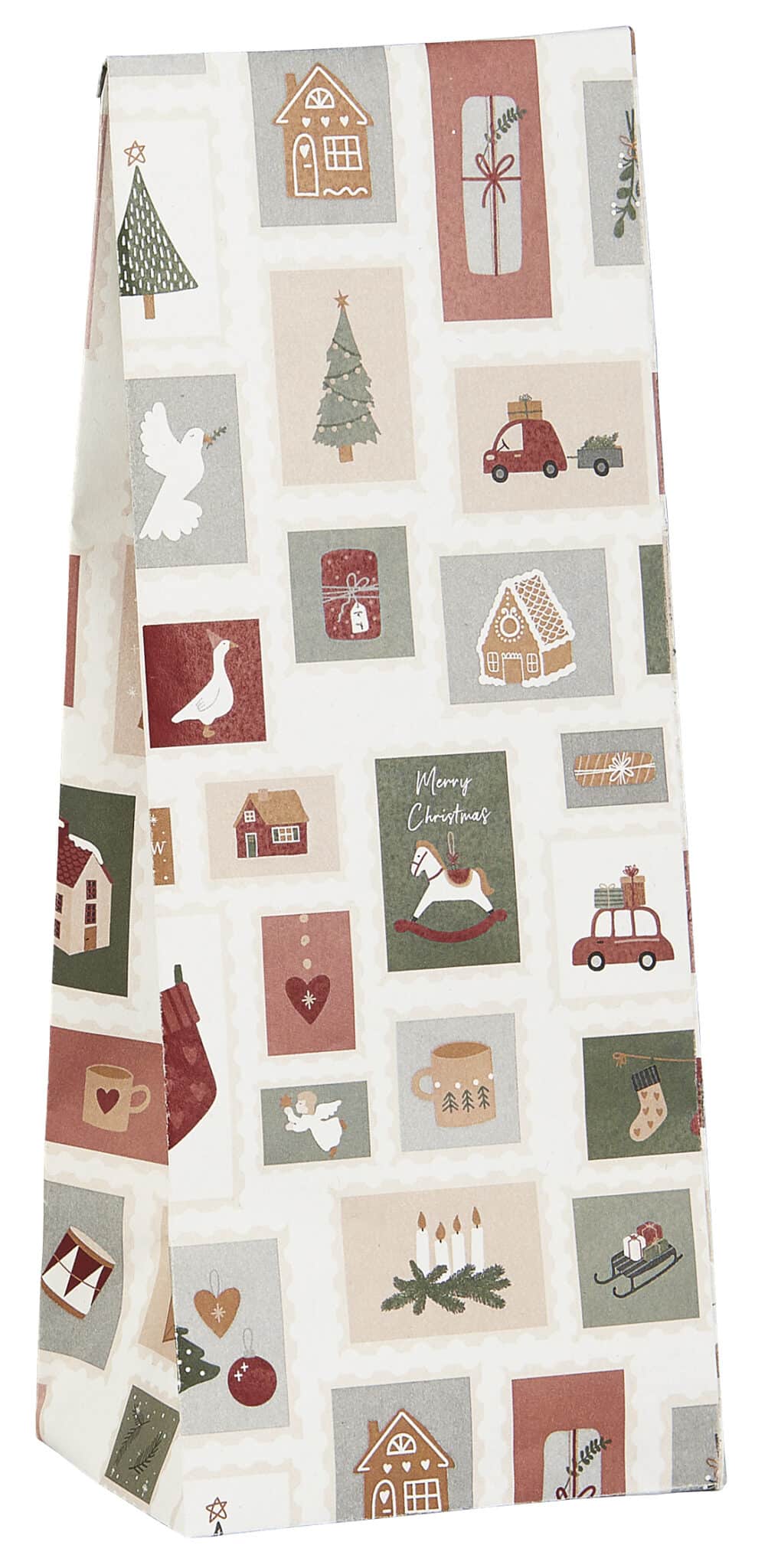 Disse gaveposer er fyldt med forskellige fine julemærker af blandt andet peberkagehuse, en adventskrans, juletræer og mange flere fine motiver.
