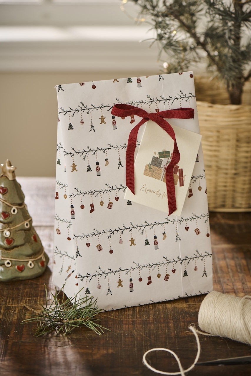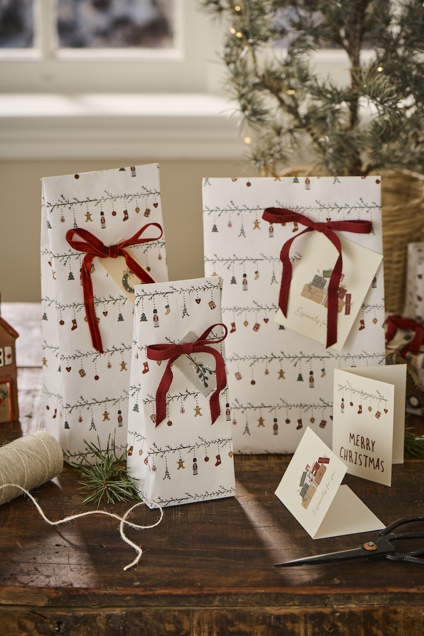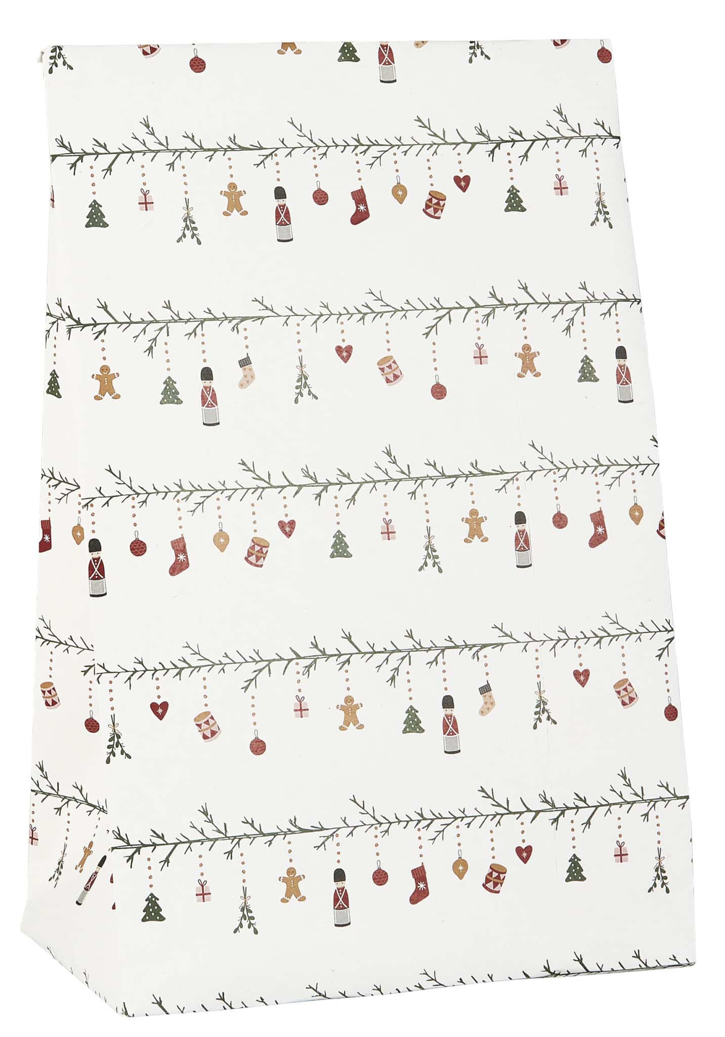 Gaveposerne er i papir og har det fineste julemotiv – nemlig små ranker, der er pyntet med peberkagemænd, julekugler, tinsoldater og andre fine motiver.