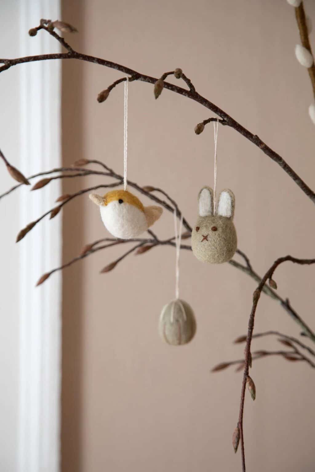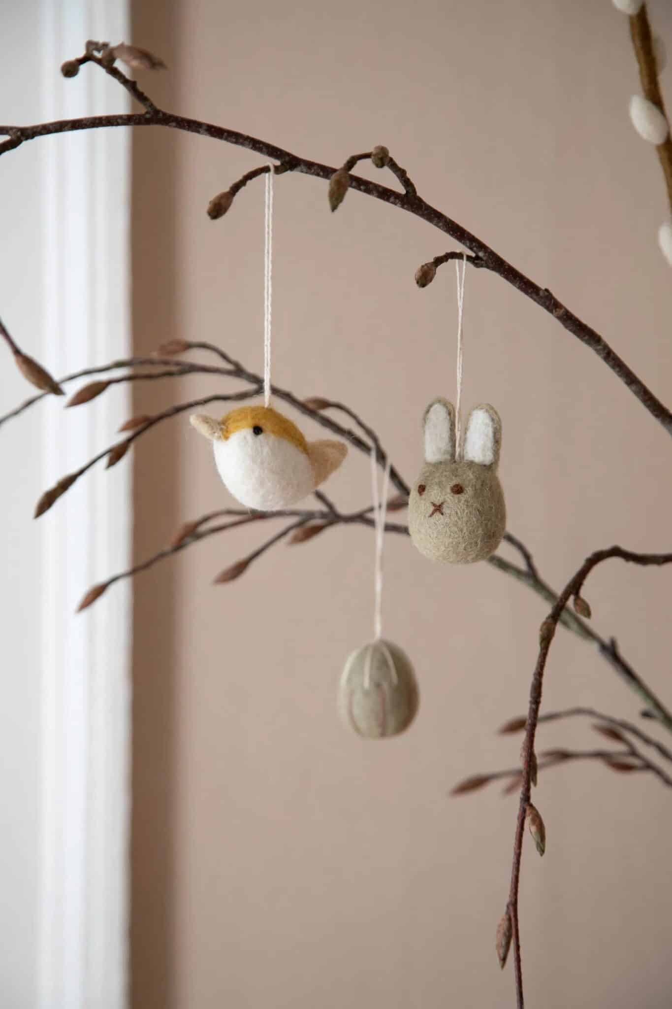 Kaniner er en stor del af påsken og derfor er disse tre håndfiltede udgaver helt perfekte, som en del af påskepynten.