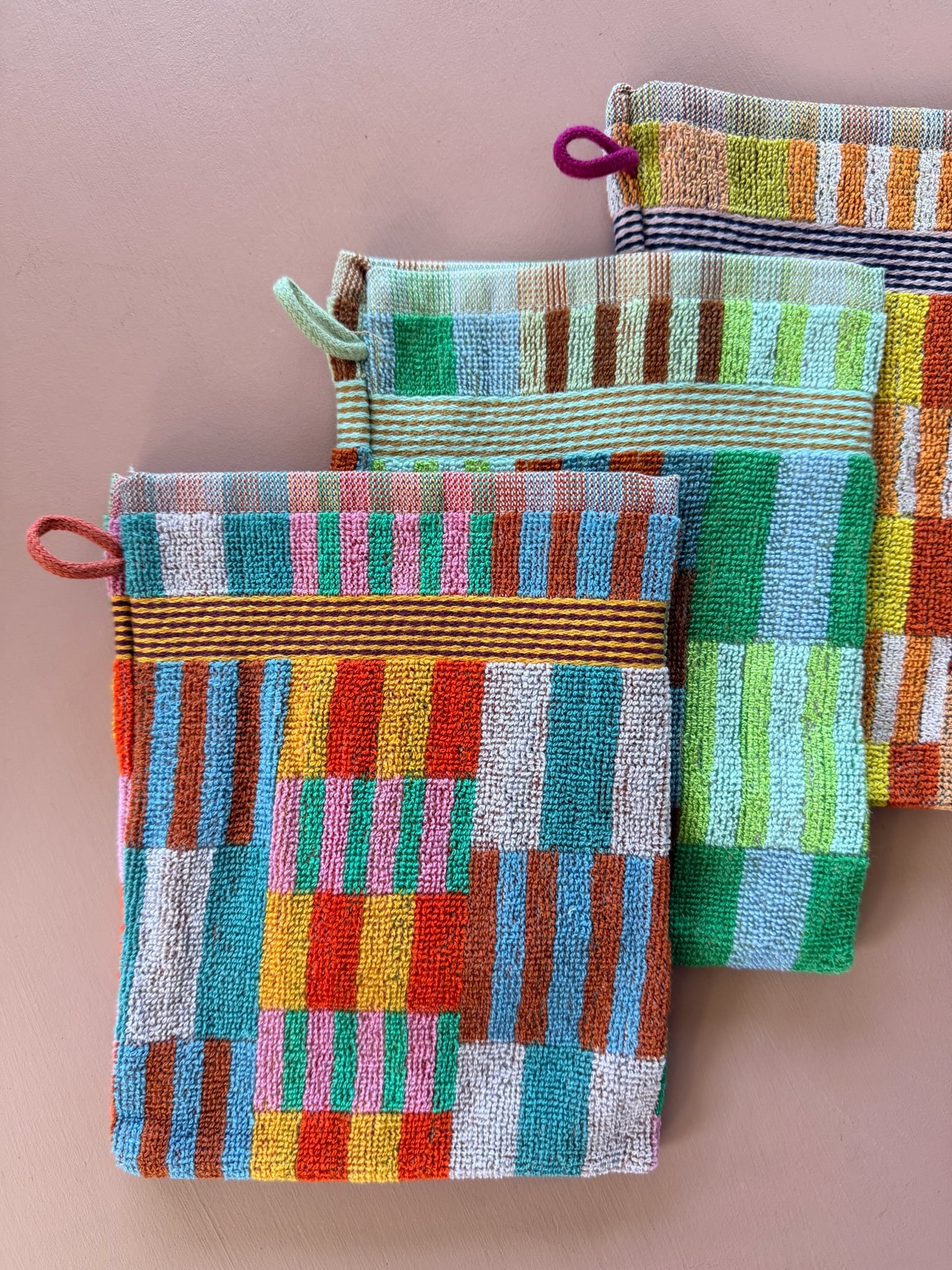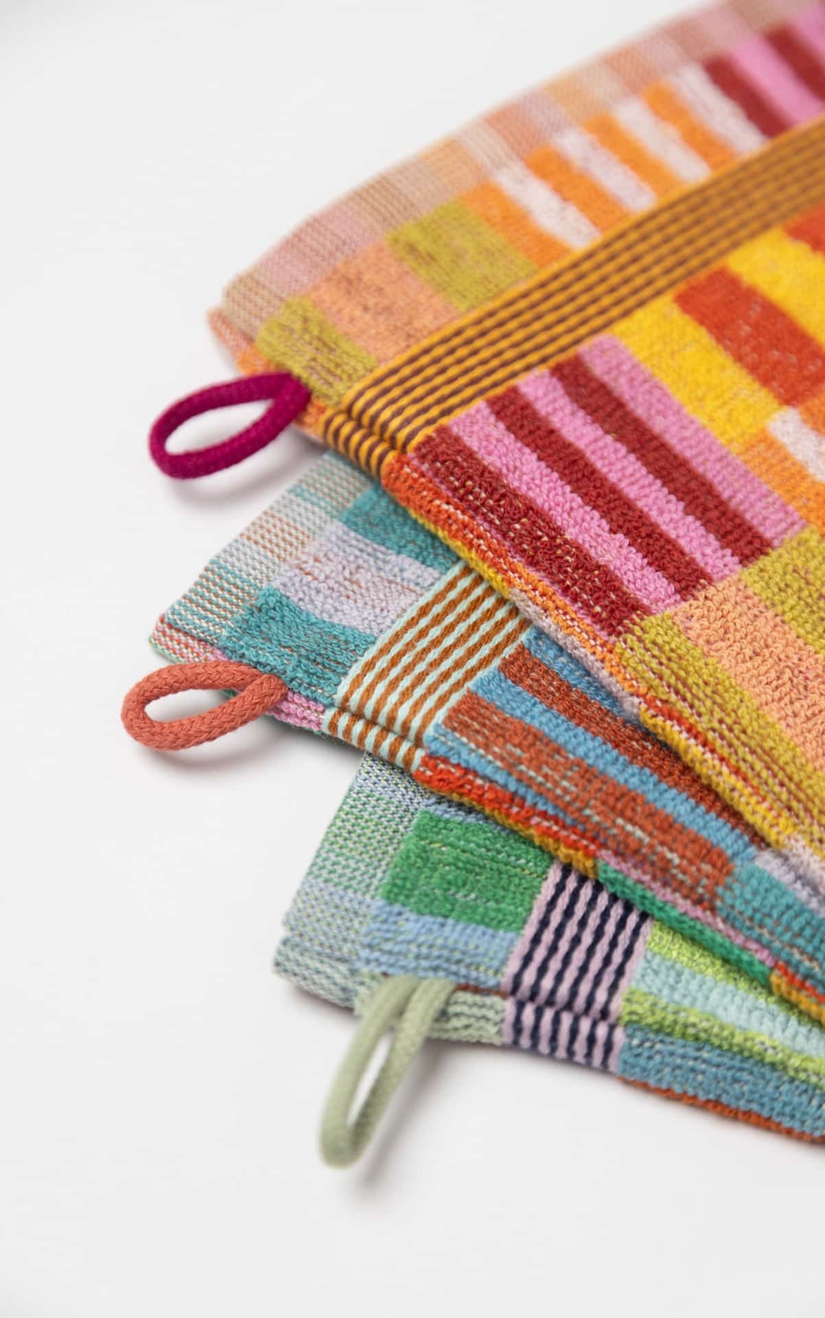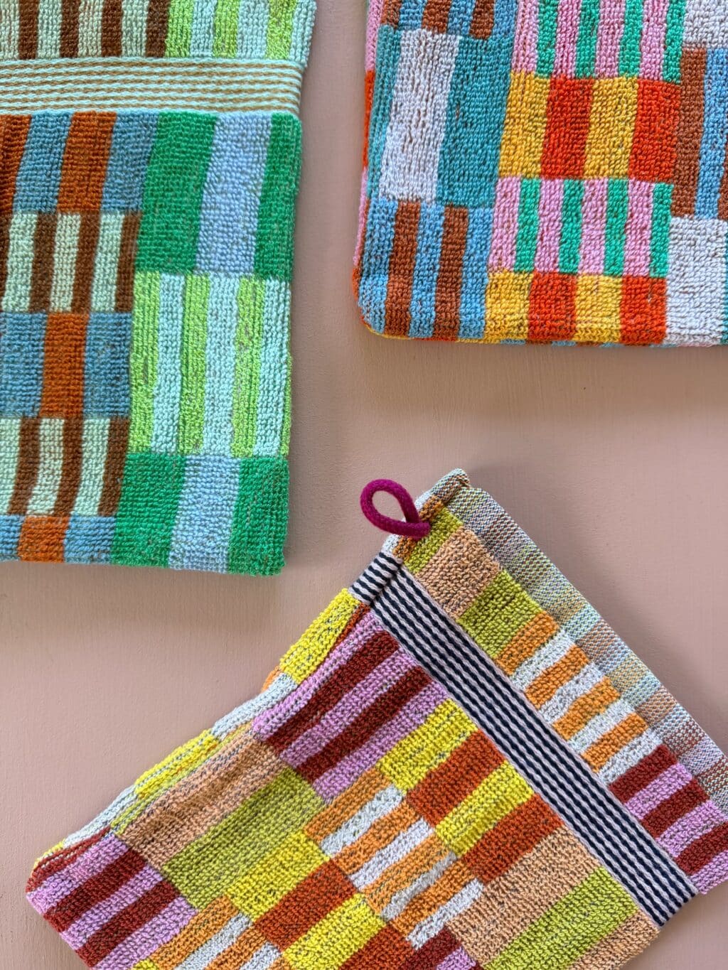 Alle de skønne farverige varer i Odds & Ends-serien er nemlig lavet af garnrester. Garnrester, der nu har fået nyt liv og er endt ud som de smukkeste tekstiler, som blandt de her klude.