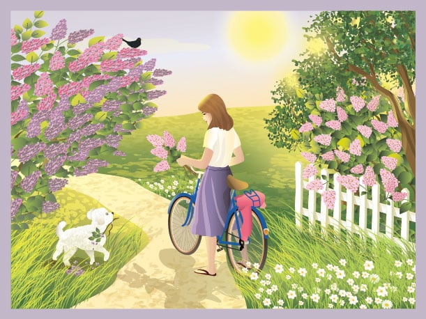Syrenerne er sprunget ud og solsortene markerer foråret med deres fløjten. Du kan nærmest mærke solens stråler i ansigtet, når du kigger på motivet her. Jo mere du dykker ned i billedet, jo flere fine detaljer finder du.
