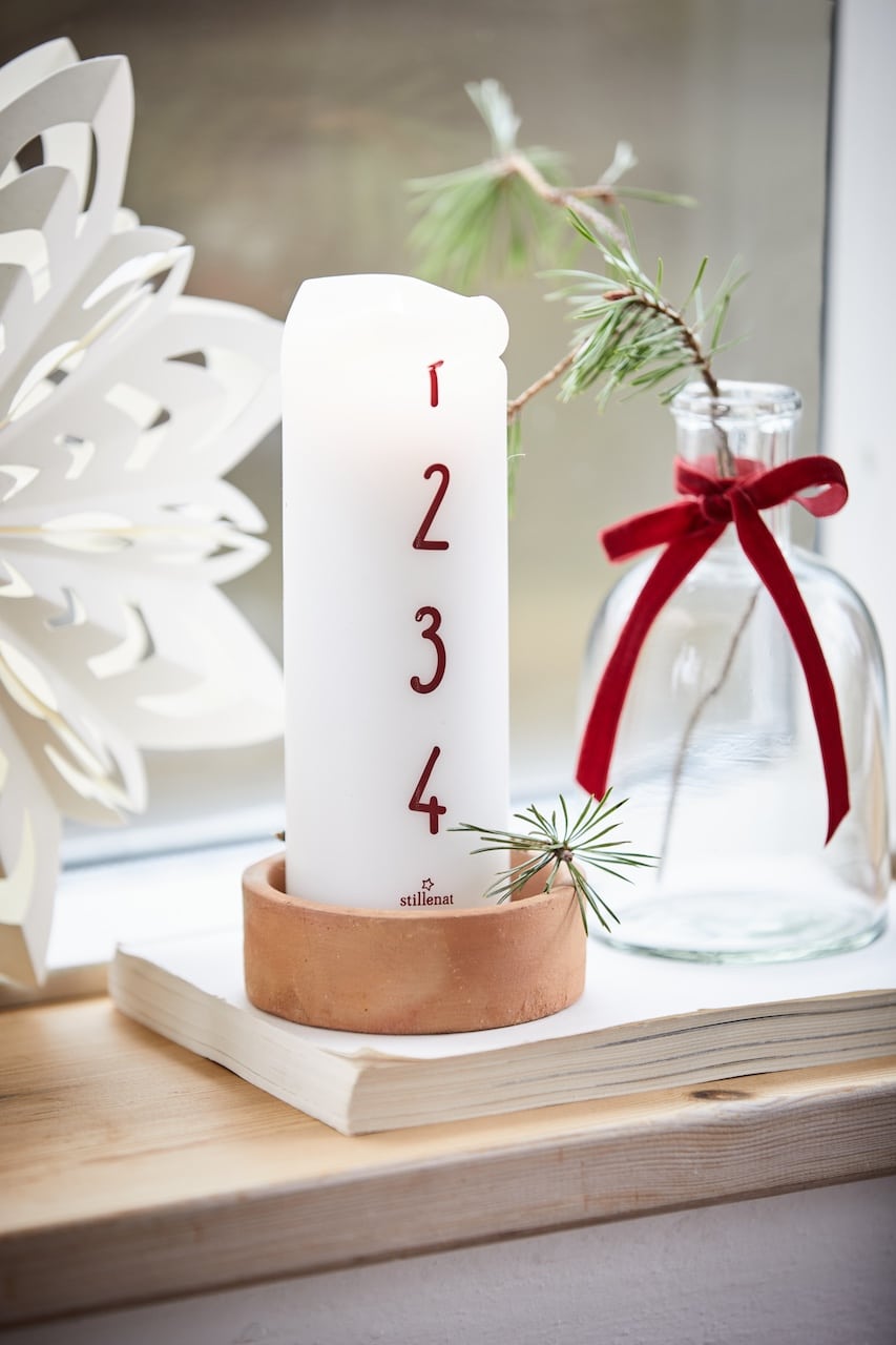 6 CM. ADVENTSLYS – hvid m/ røde tal