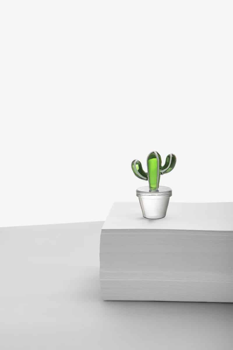 Her er en brevpresser i massivt glas, formet som en kaktus i potte – den er både praktisk og virkelig dekorativ.