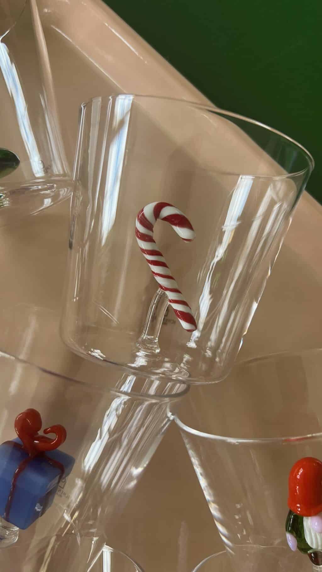 Drikkeglassene er helt enkle og klassiske i formen, men indeni selve glasset er der den fineste slikstok.