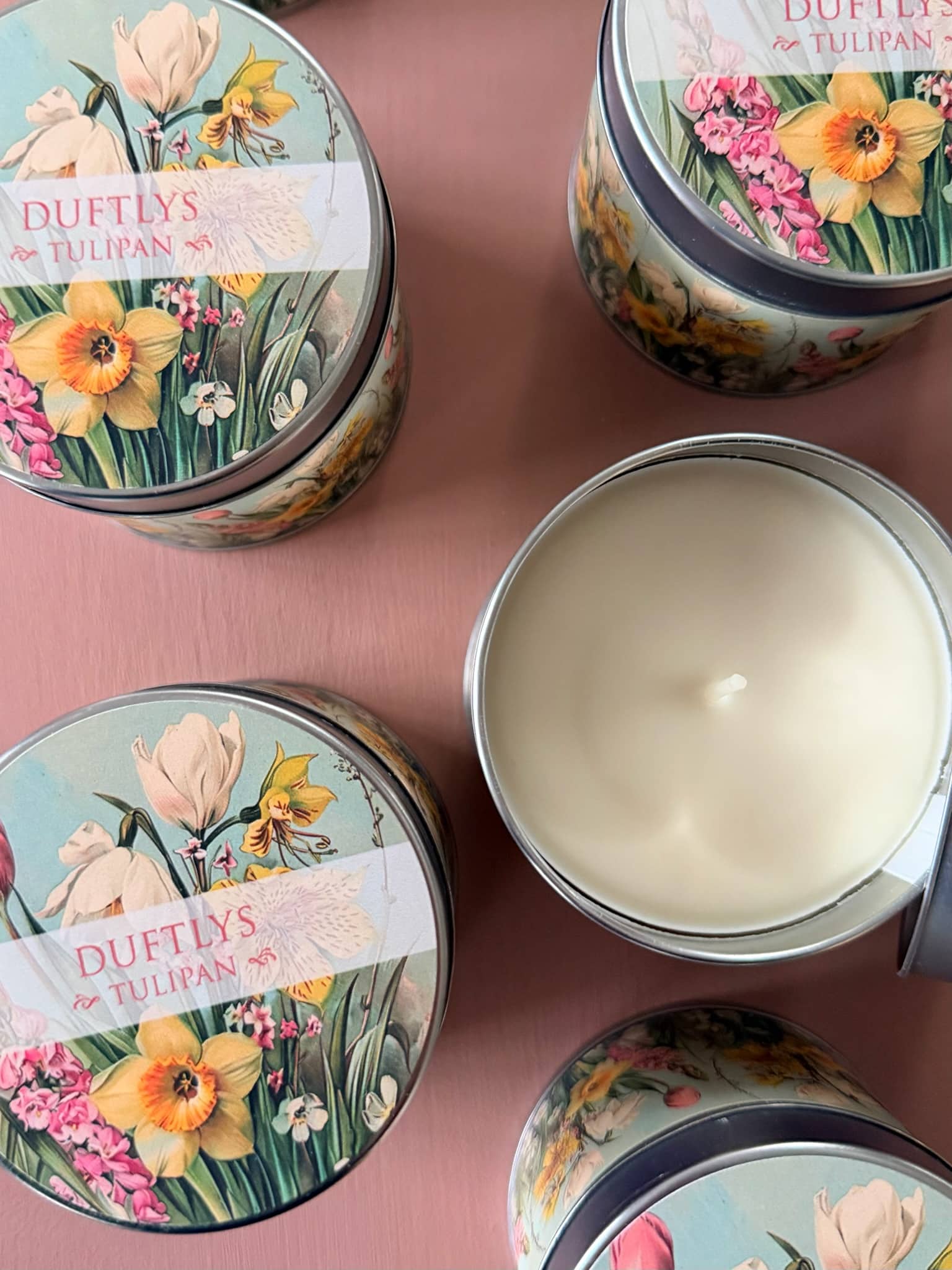 Bring duften og følelsen af forår ind i hjemmet med dette friske duftlys i metaldåse.