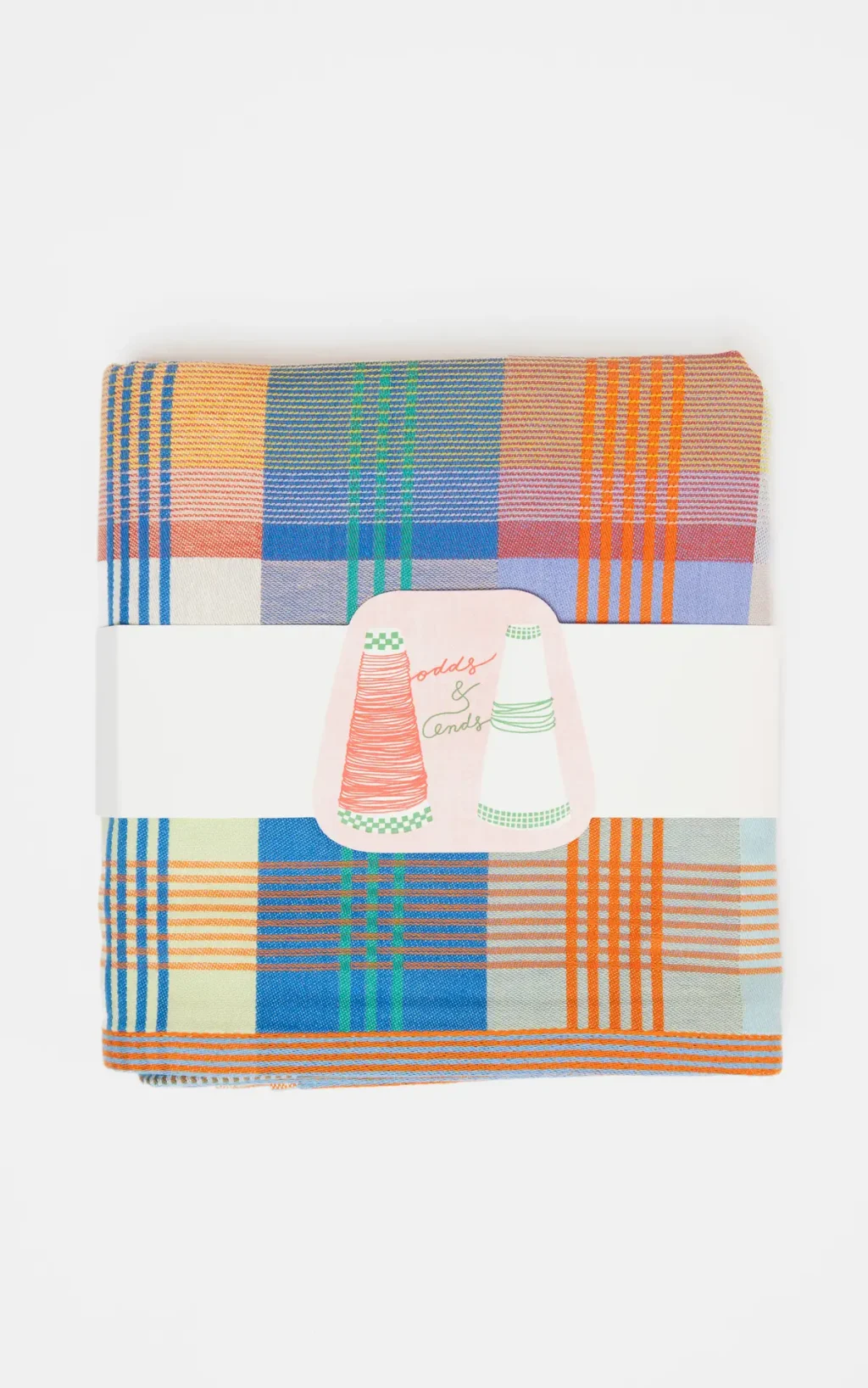 Alle de skønne farverige varer i Odds & Ends-serien er nemlig lavet af garnrester. Garnrester, der nu har fået nyt liv og er endt ud som de smukkeste tekstiler, som blandt andet denne dug.