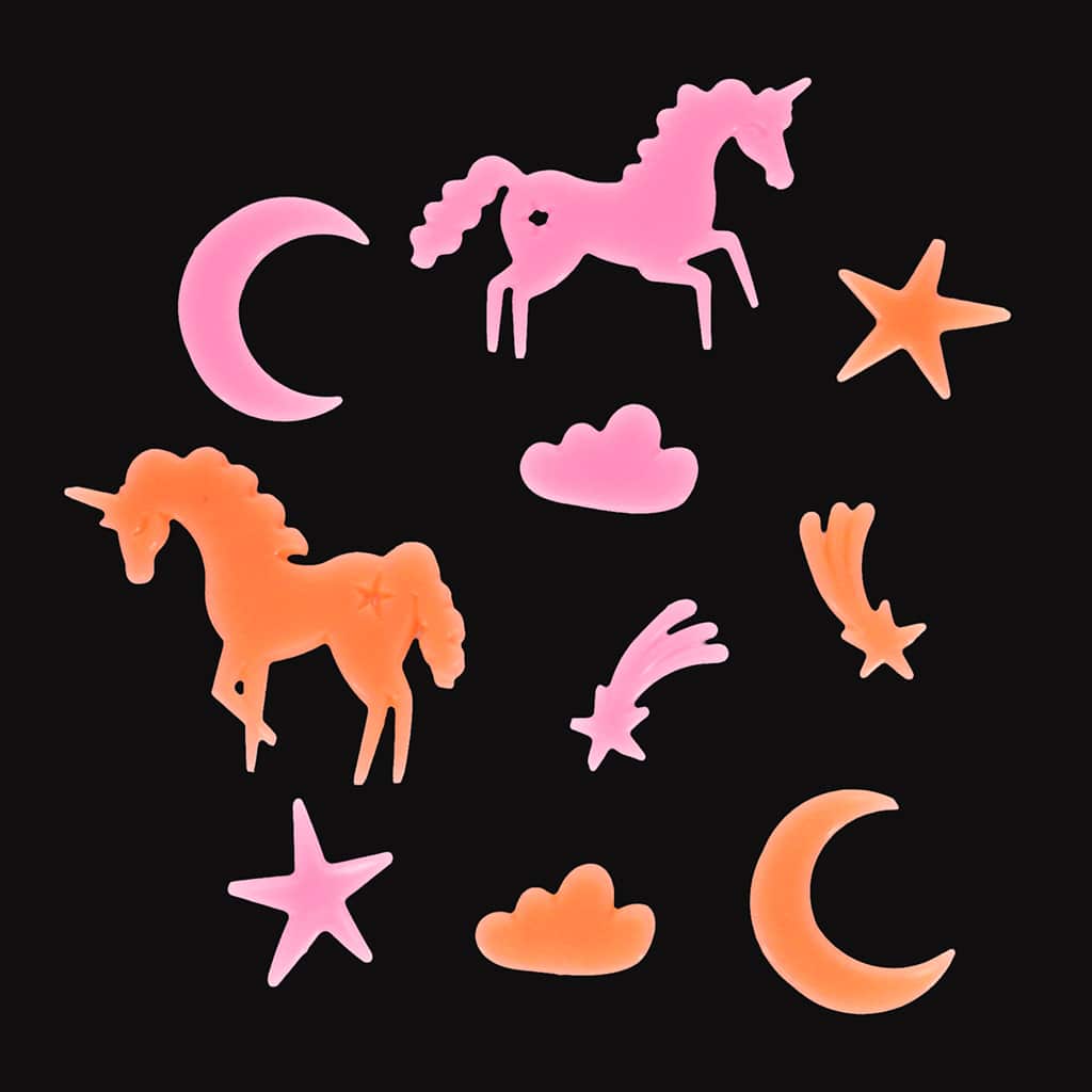 Pynt værelset op med de sødeste selvlysende figurer – nemlig enhjørninger, måner og stjerner.
