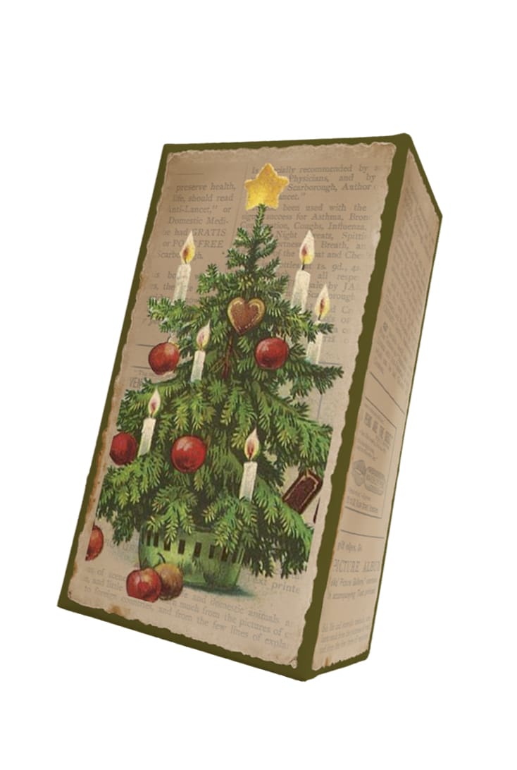 Sæben er smukt indpakket med motiv af et vintage juletræ.
