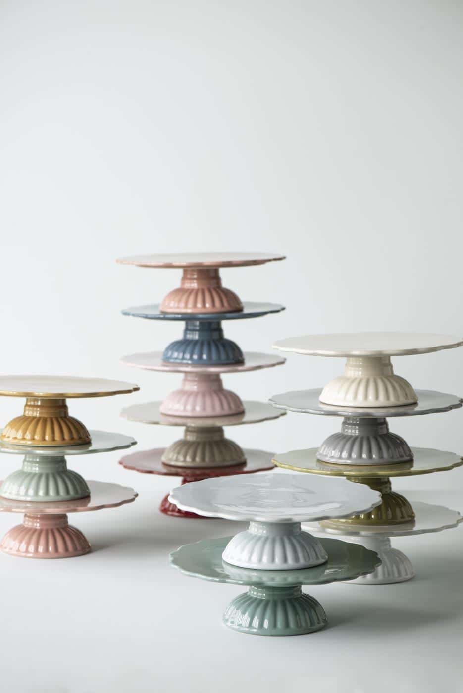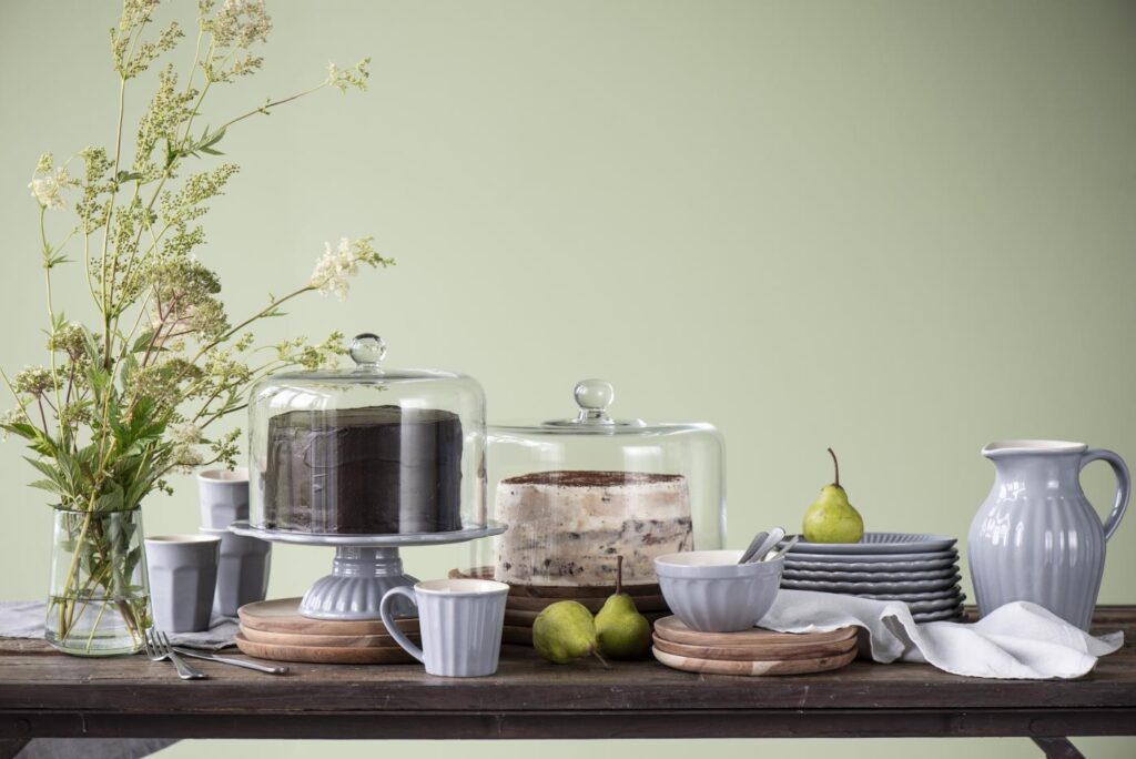 Skønt gråt kagefad på fod.