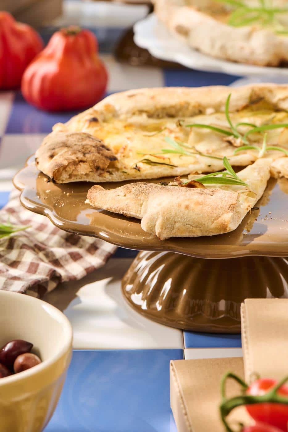 Skønt hasselnødfarvet kagefad på fod.