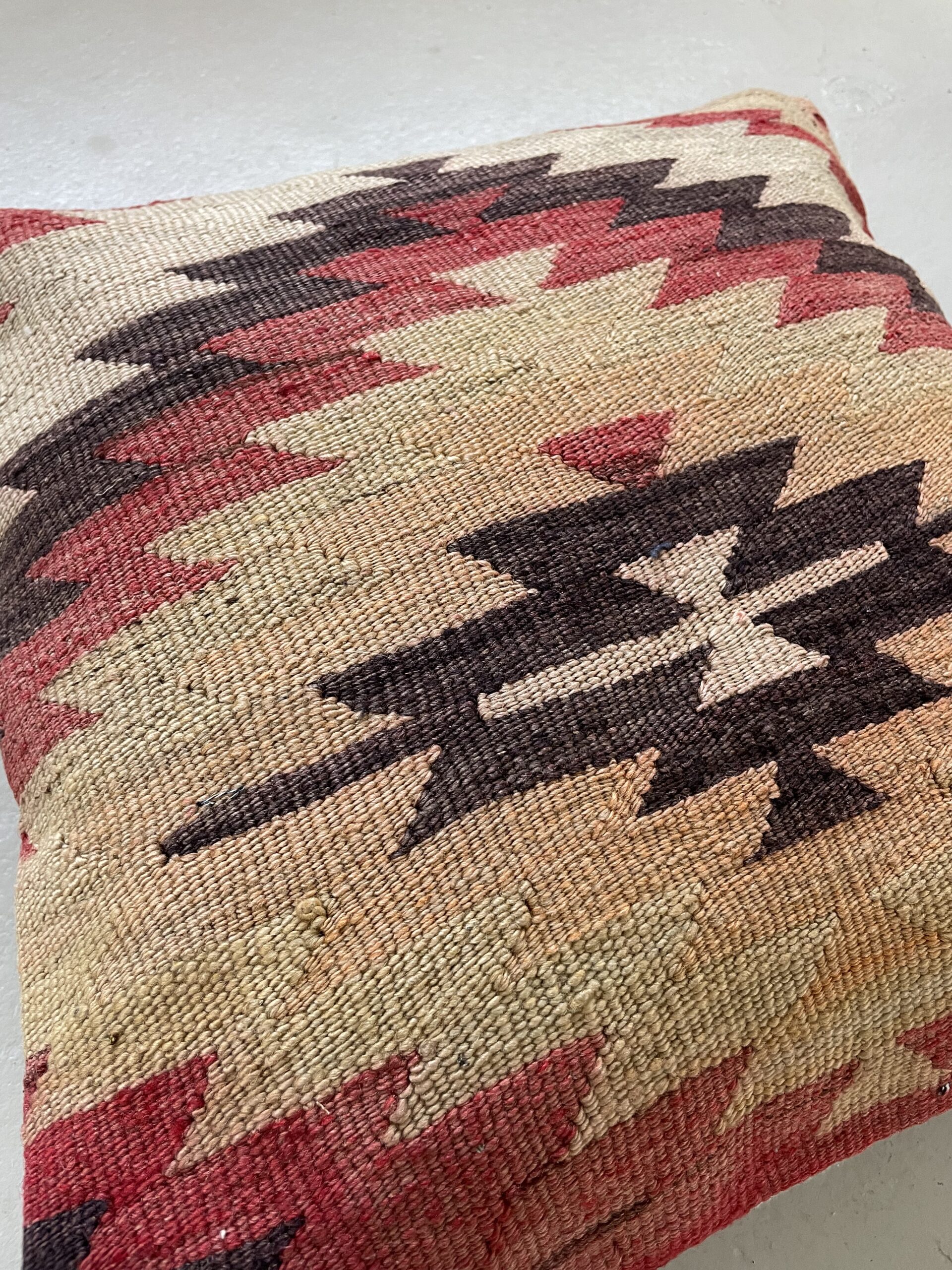 Alle vores kelimpuder er syet af vintage kelimtæpper fra Tyrkiet – det gør, at alle puderne er unikke og du finder altså ikke 2 puder som er 100% ens.