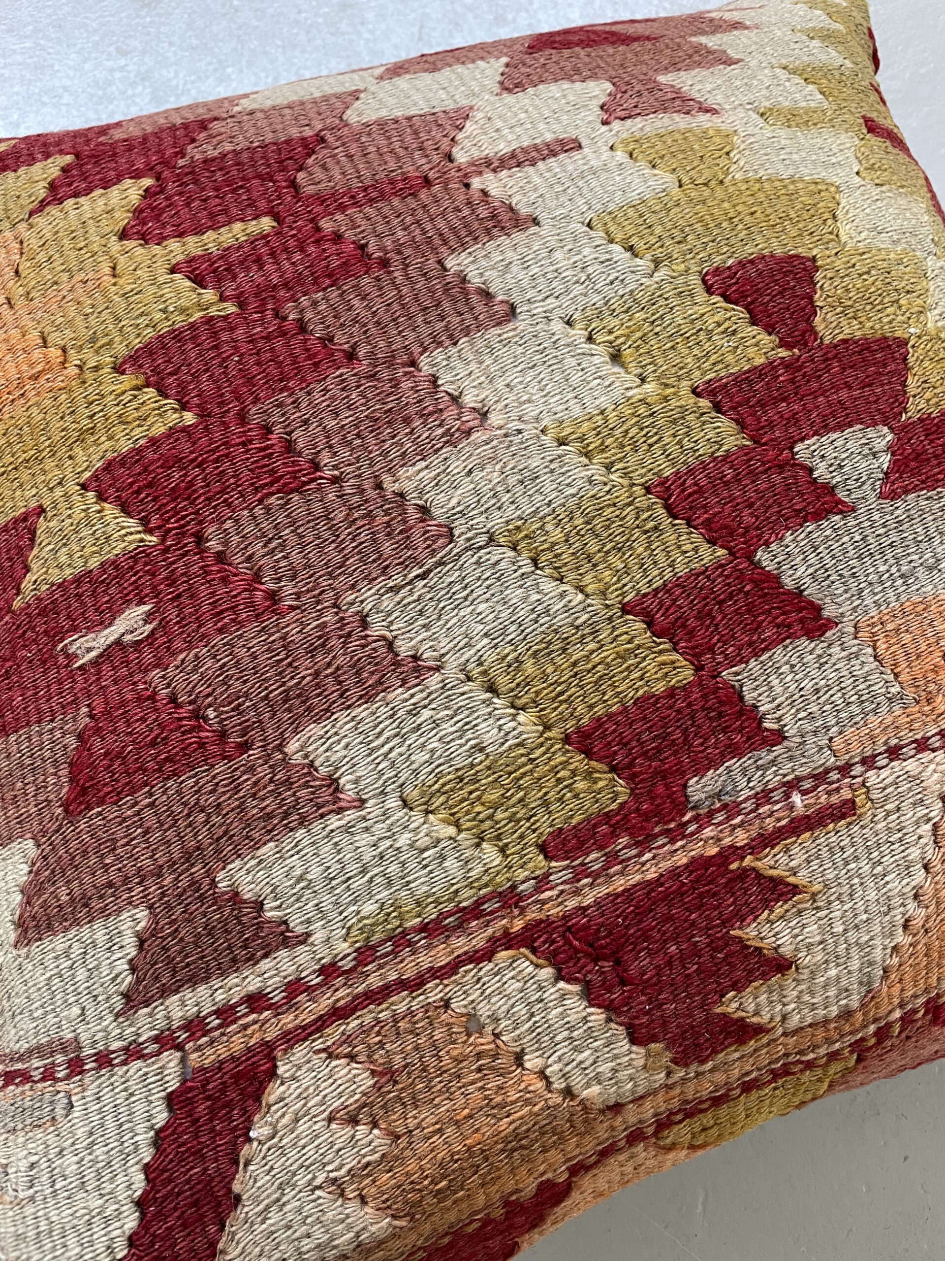 Alle vores kelimpuder er unika puder. Det vil sige, at de er syet af gamle kelimtæpper og det betyder altså at der ikke er to puder som er ens.