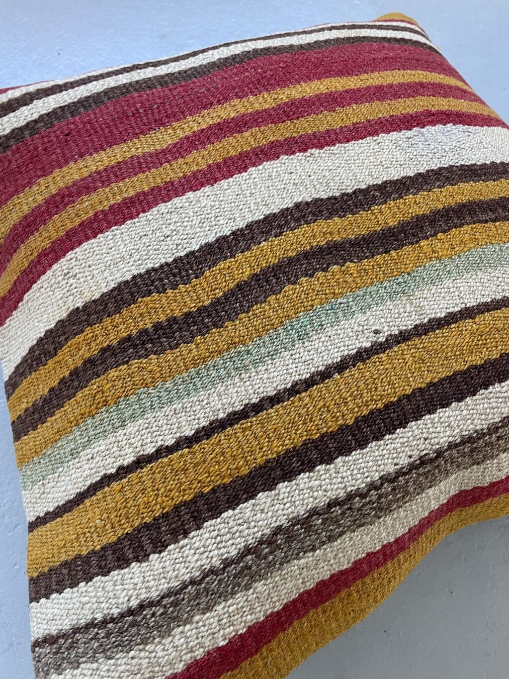 Alle vores kelimpuder er syet af vintage kelimtæpper fra Tyrkiet – det gør, at alle puderne er unikke og du finder altså ikke 2 puder som er 100% ens.