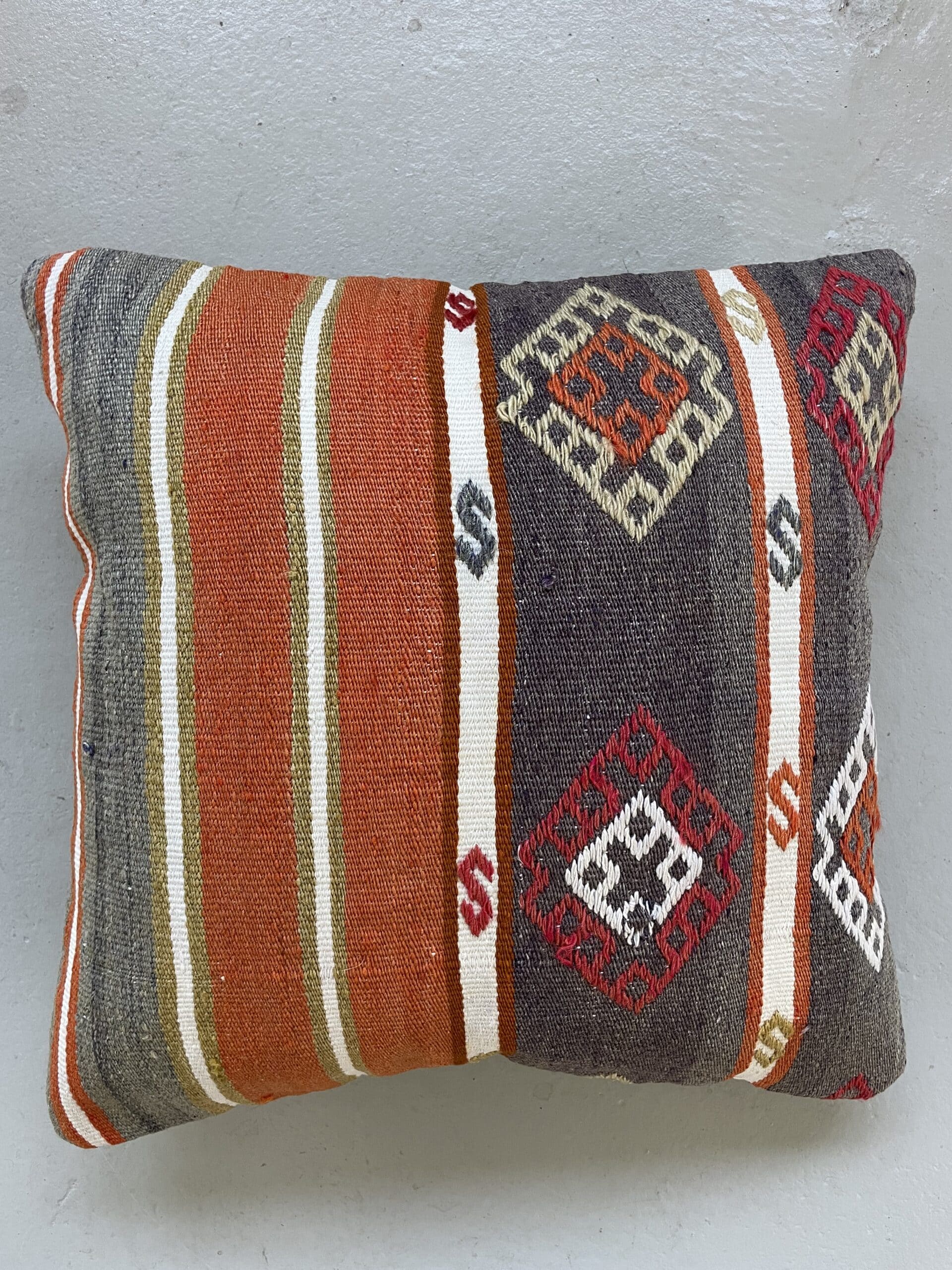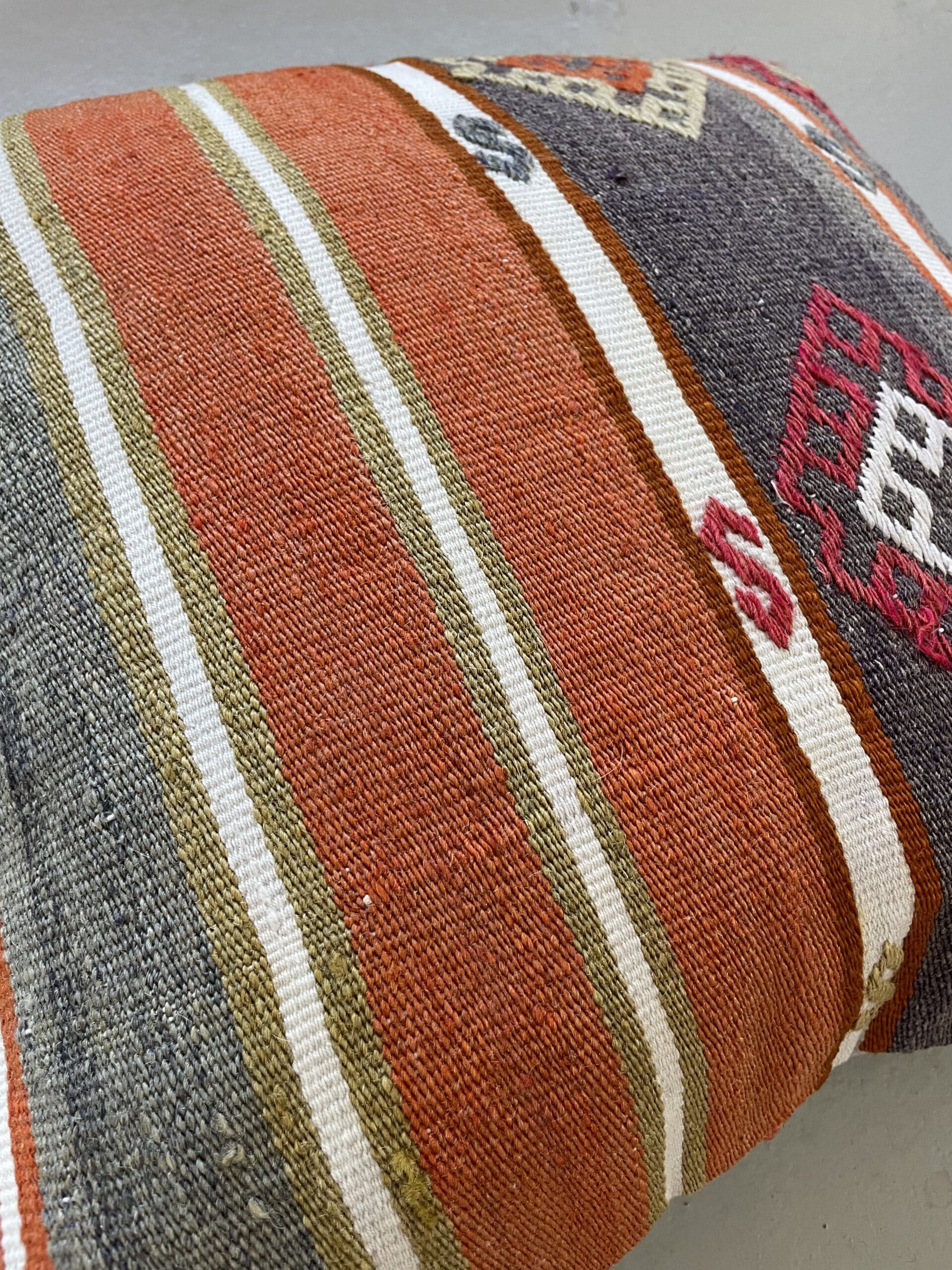 Alle vores kelimpuder er syet af vintage kelimtæpper fra Tyrkiet – det gør, at alle puderne er unikke og du finder altså ikke 2 puder som er 100% ens.