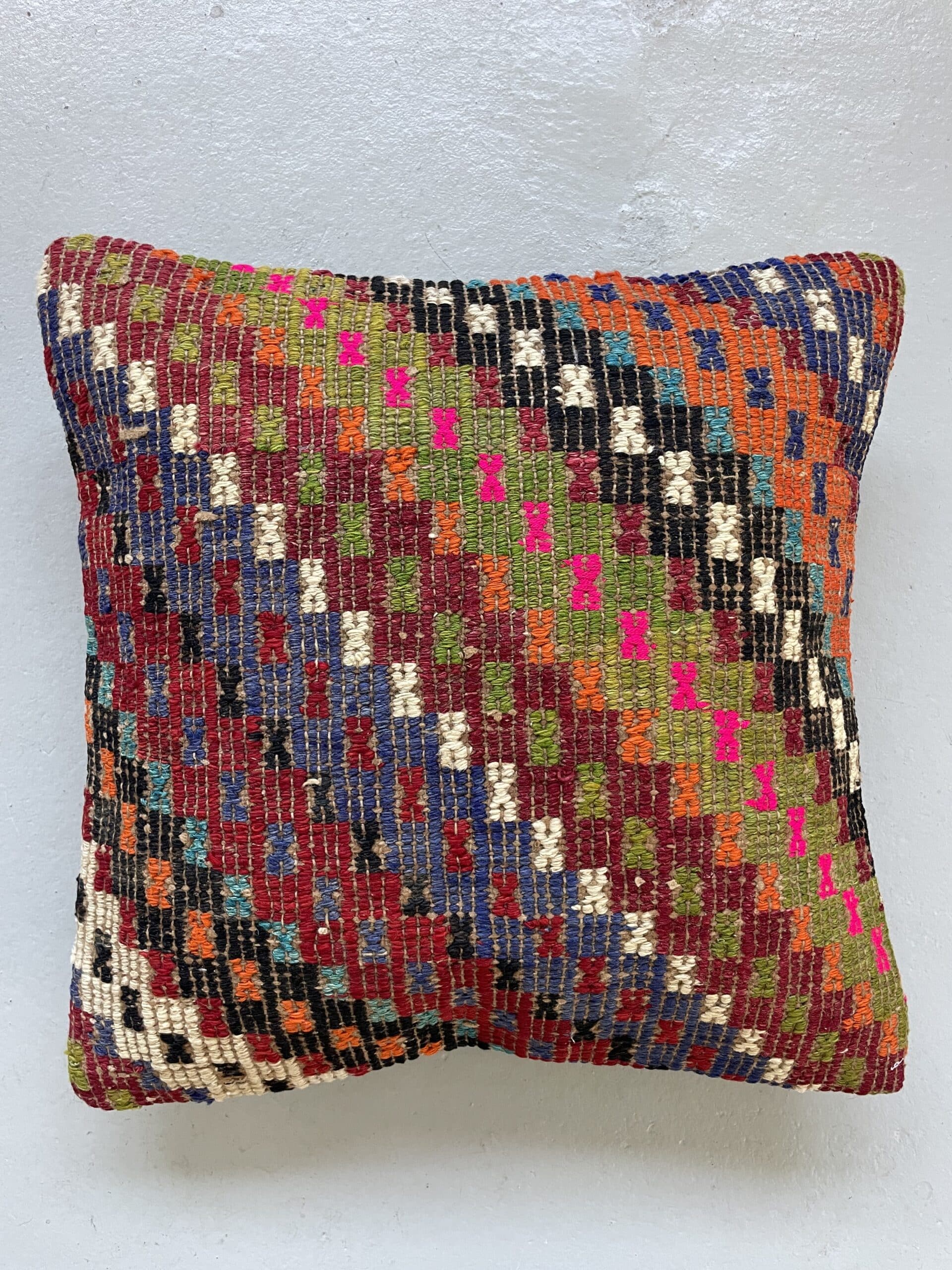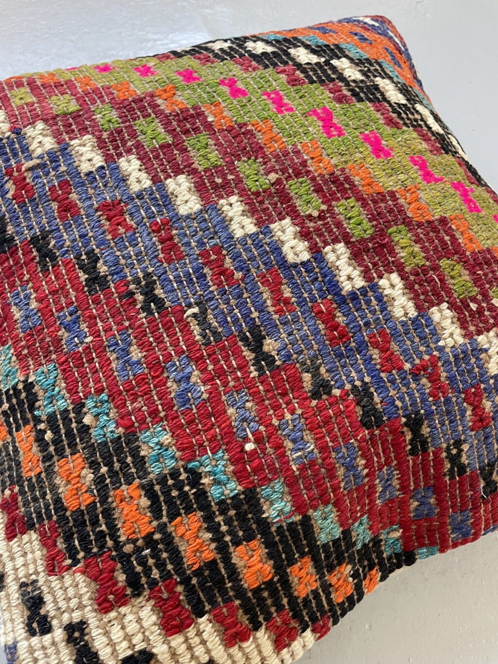 Skøn kelimpude i flotte farver med et helt særligt mønster.