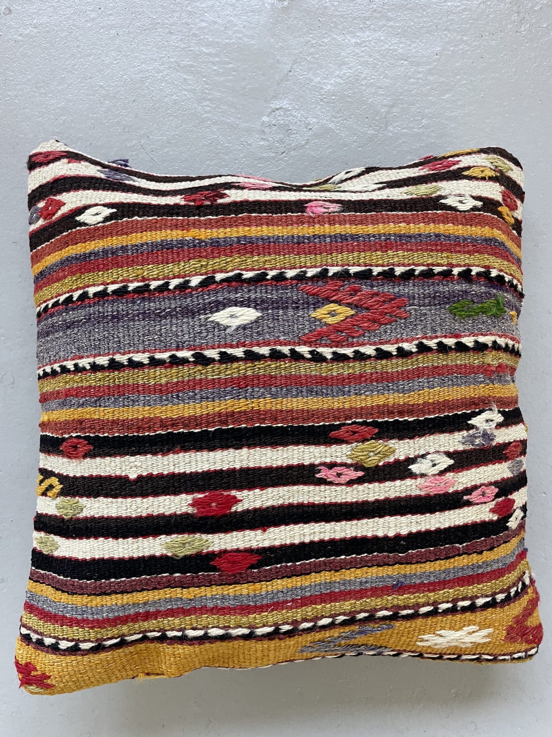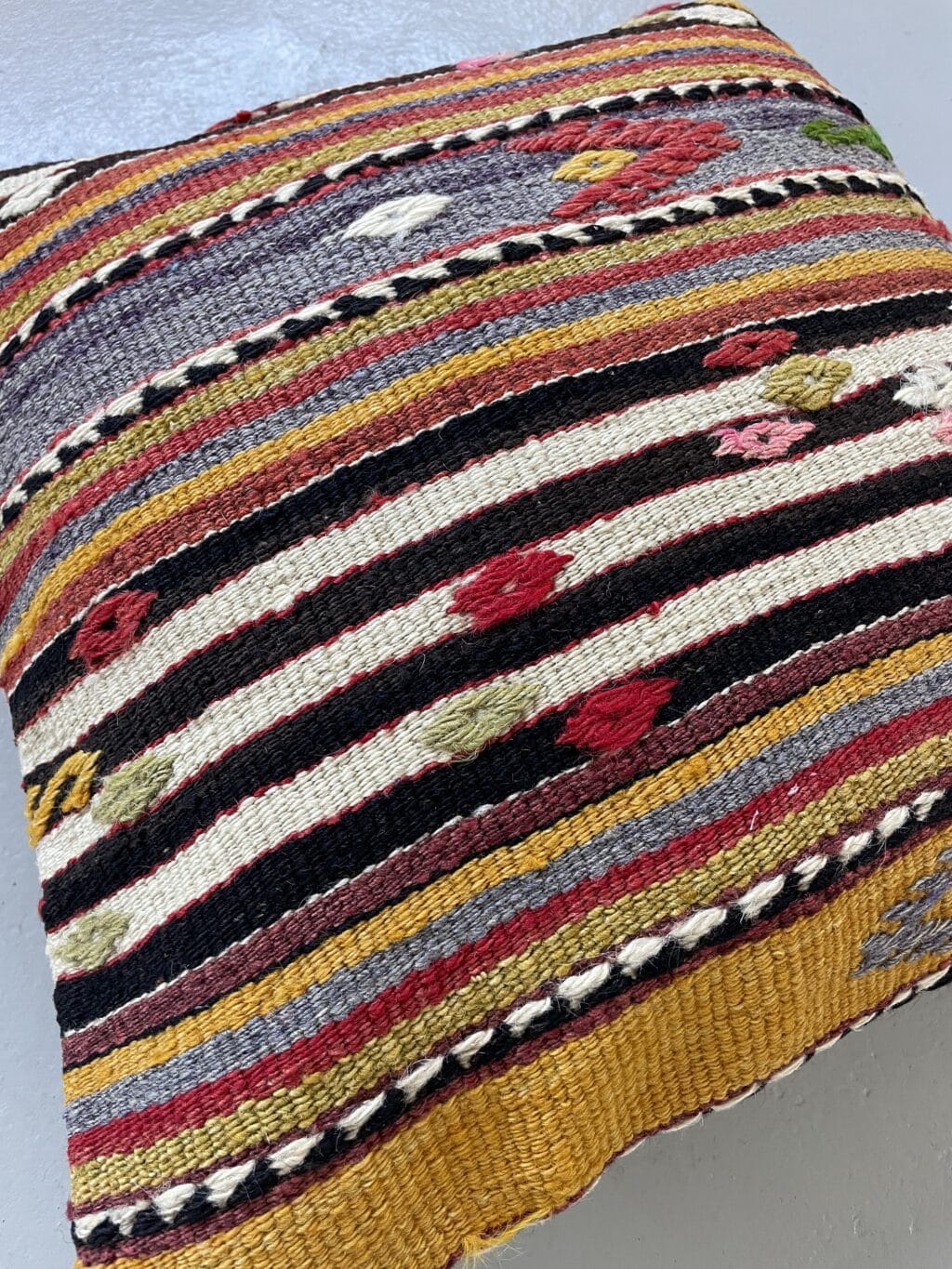 Alle vores kelimpuder er syet af vintage kelimtæpper fra Tyrkiet – det gør, at alle puderne er unikke og du finder altså ikke 2 puder som er 100% ens.