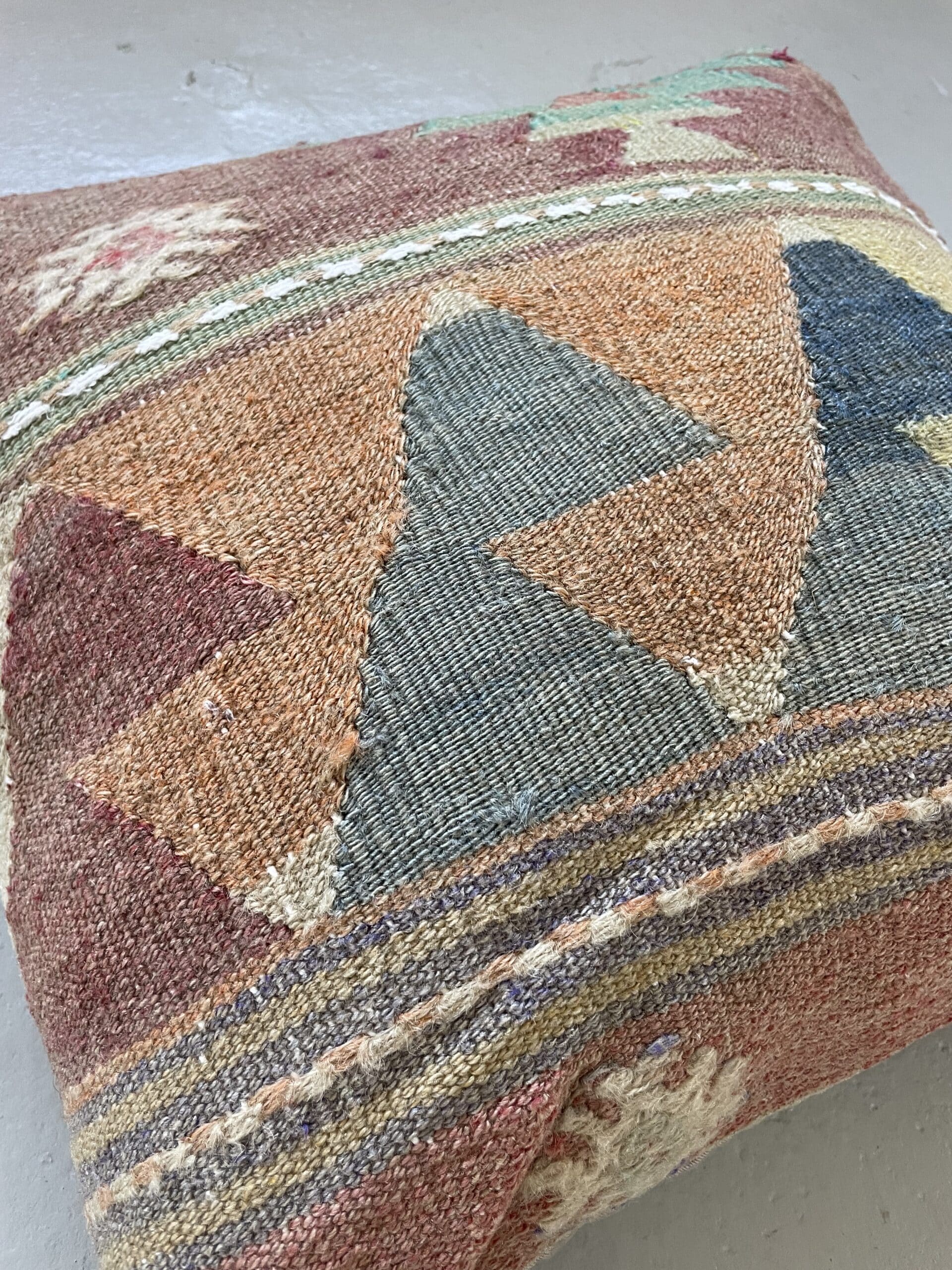 Firkantet kelimpude med de flotteste rolige farver og fint mønster.