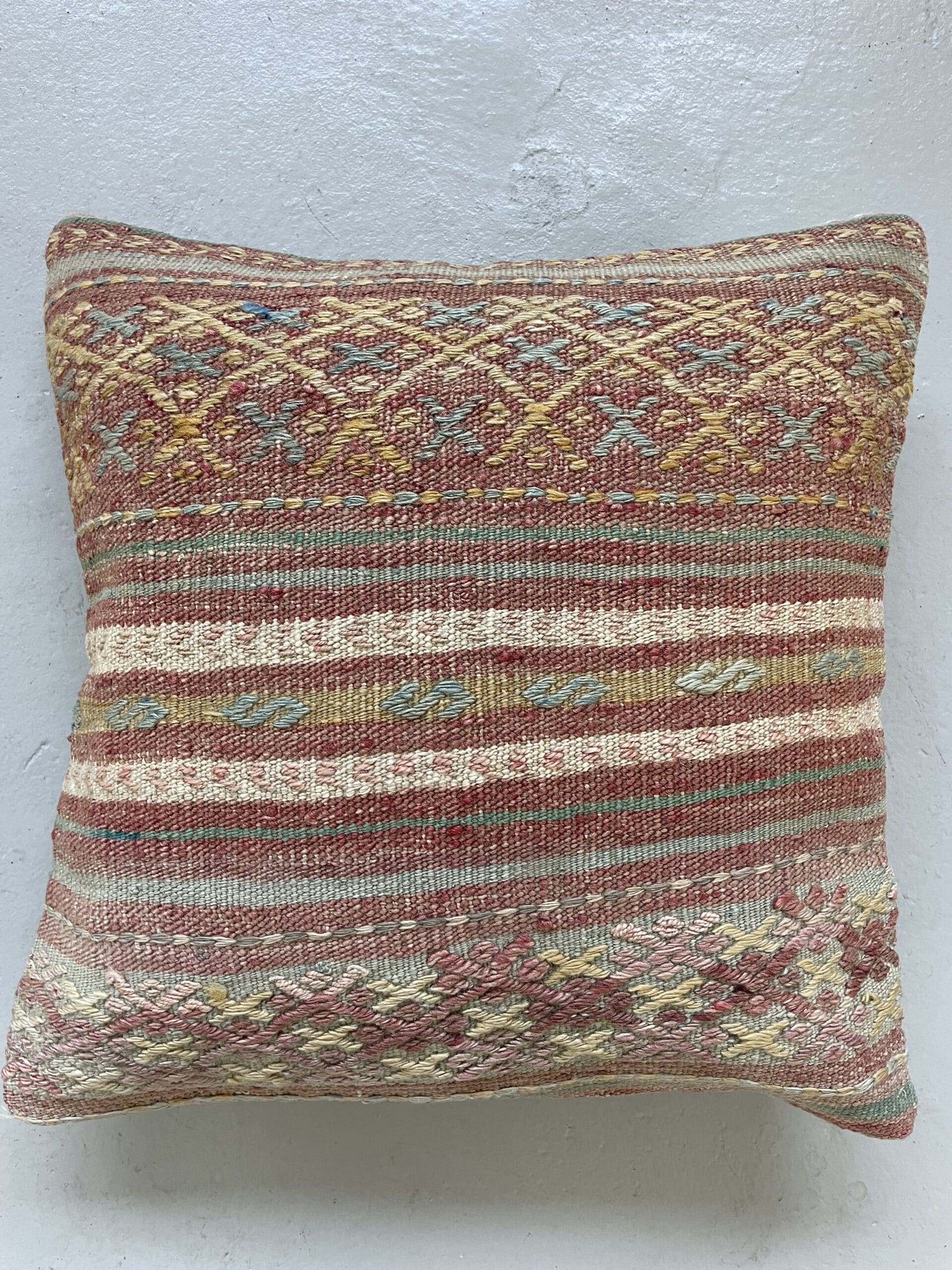 I Tyrkiet har vi fundet en bunke smukke vintage puder, syet af gamle kelimtæpper – hver pude er helt unik og du finder altså ikke 2 identiske puder.