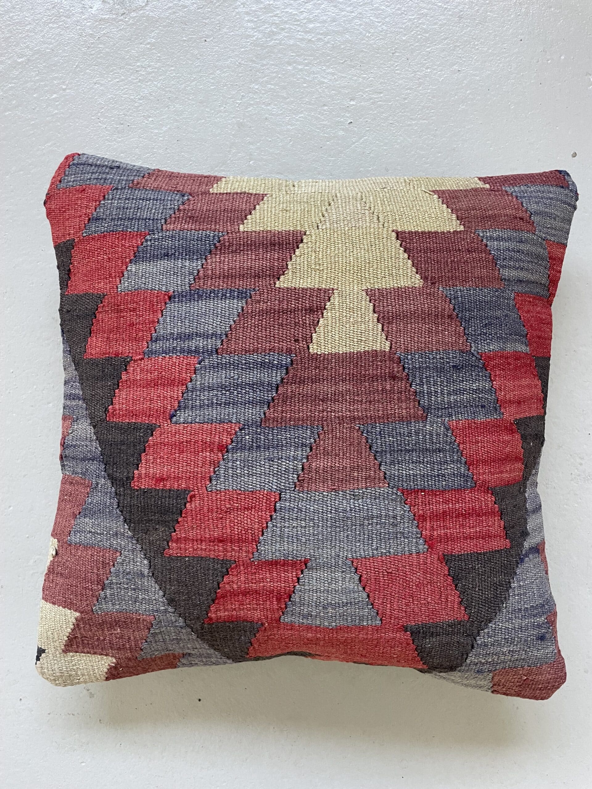 Alle vores kelimpuder er syet af vintage kelimtæpper, som grundet slid ikke er brugbare som tæpper længere – men til gengæld kan man nu sy de smukkeste puder af dem.