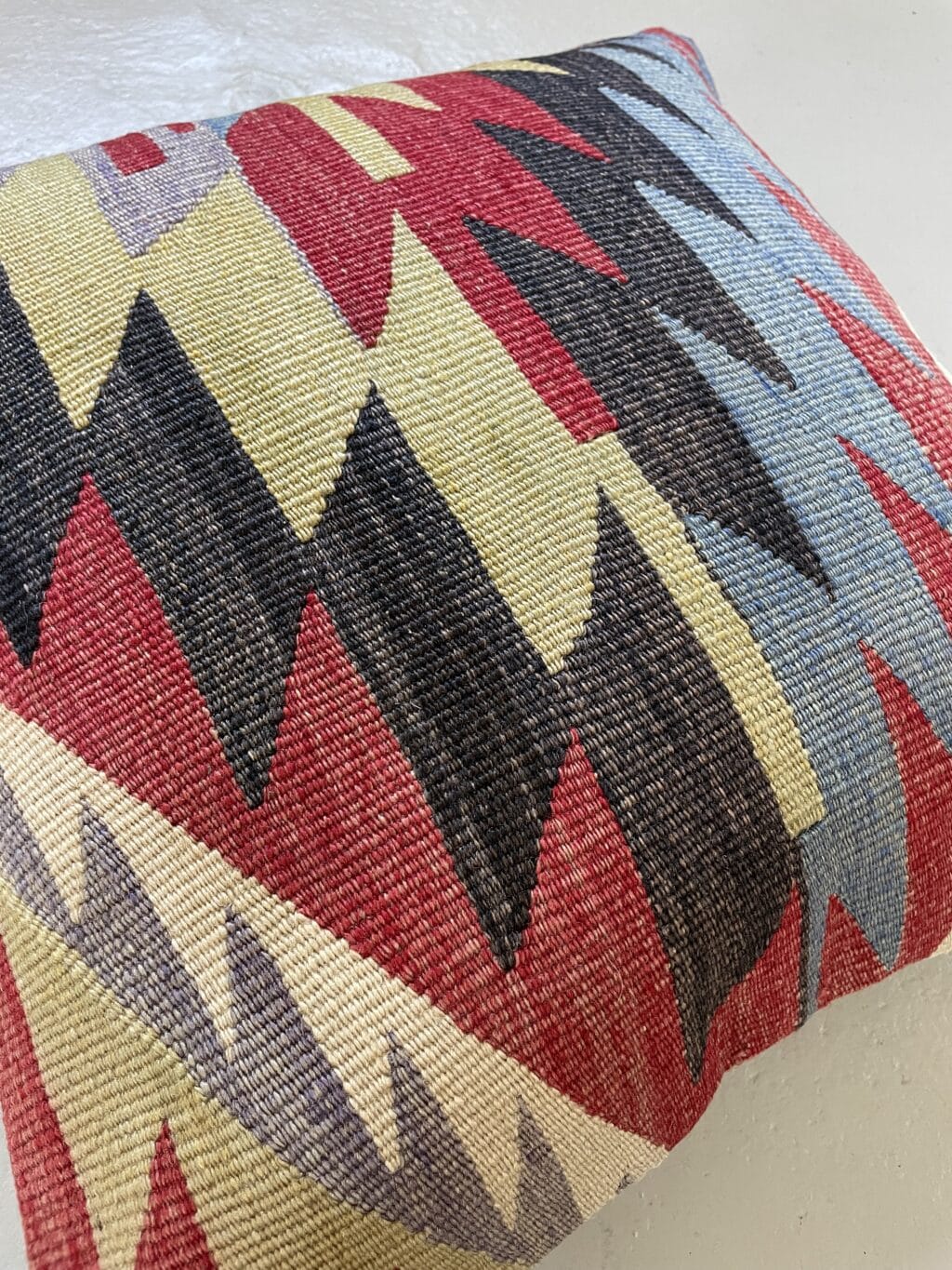 Vi vælger selv hver eneste kelimpude ud – vi ønsker nemlig selv at bestemme præcis hvilke farver og mønstre vi får hjem, og så er der ingen vej udenom – andet end at nærstudere hver eneste pude.