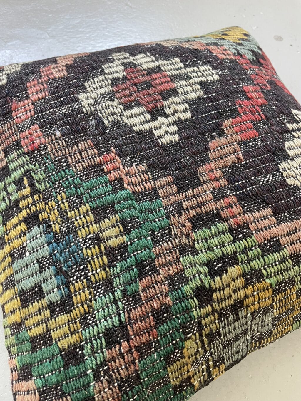 Sæt gerne kelimpuden sammen med nogle af de andre matchende kelimpuder – eller kombiner den sammen med nogle af de ensfarvede puder.