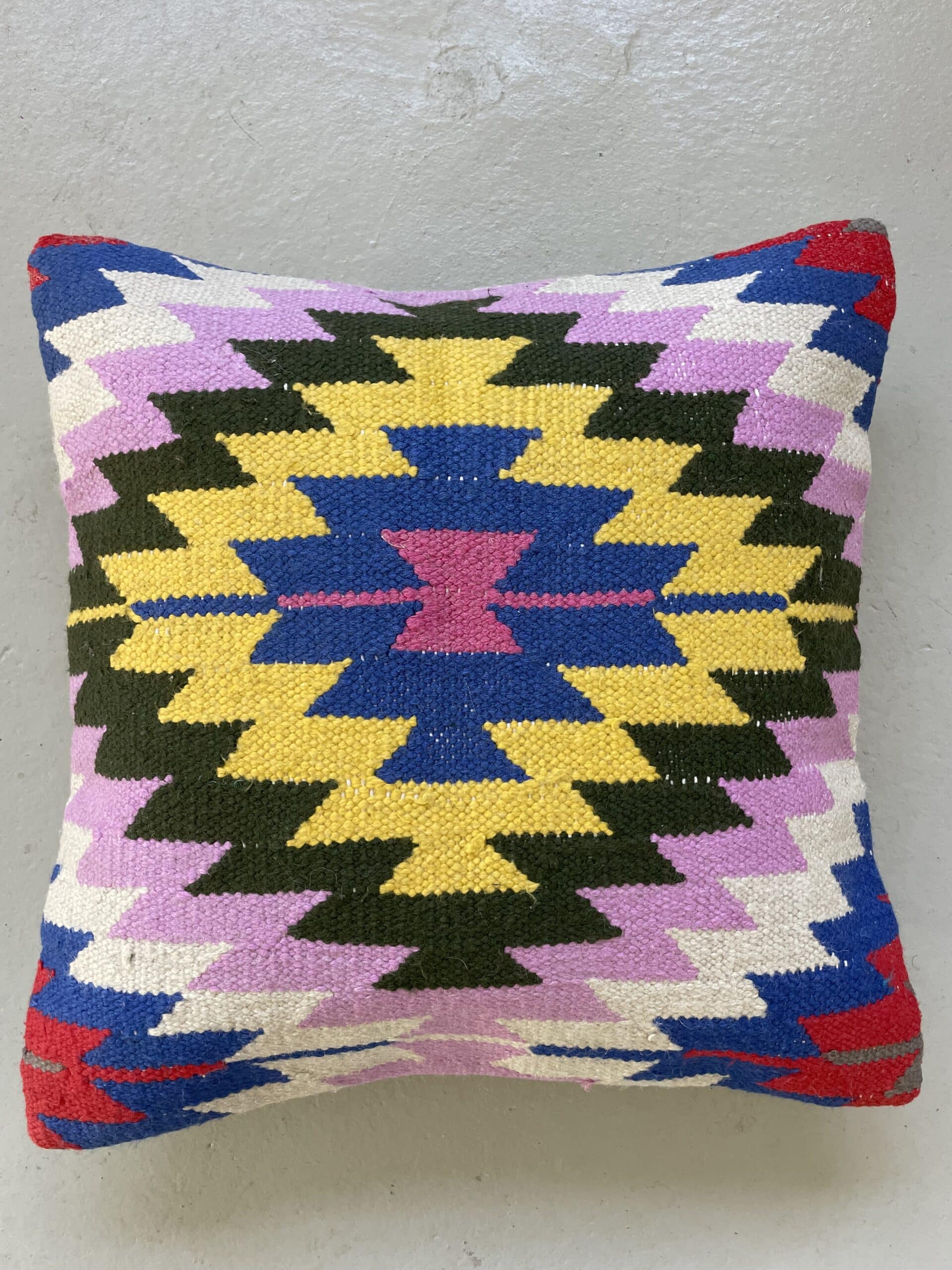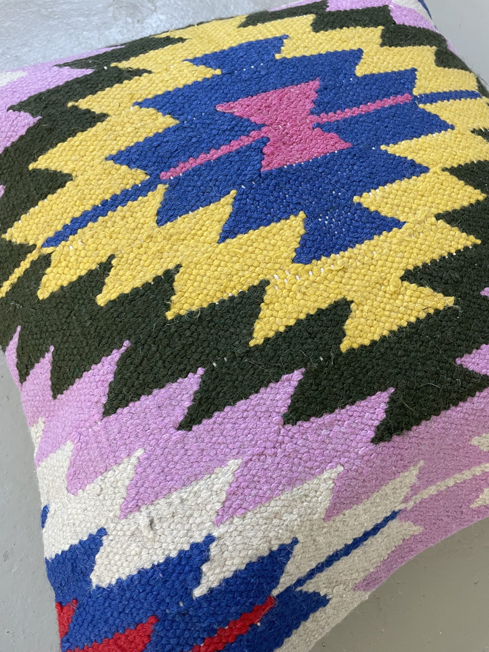 Alle vores kelimpuder er syet af vintage tæpper og du finder derfor ikke to puder, der er ens.