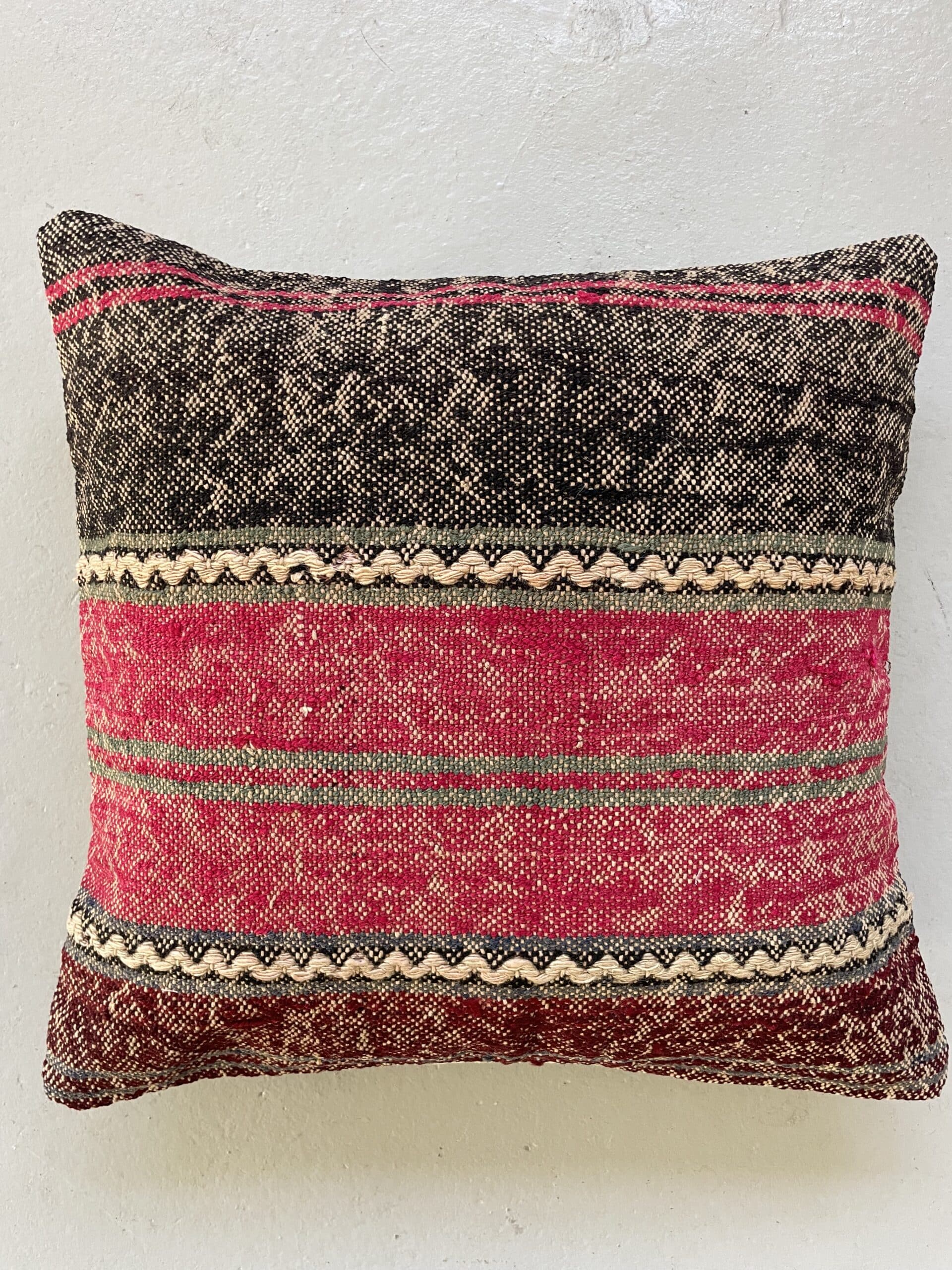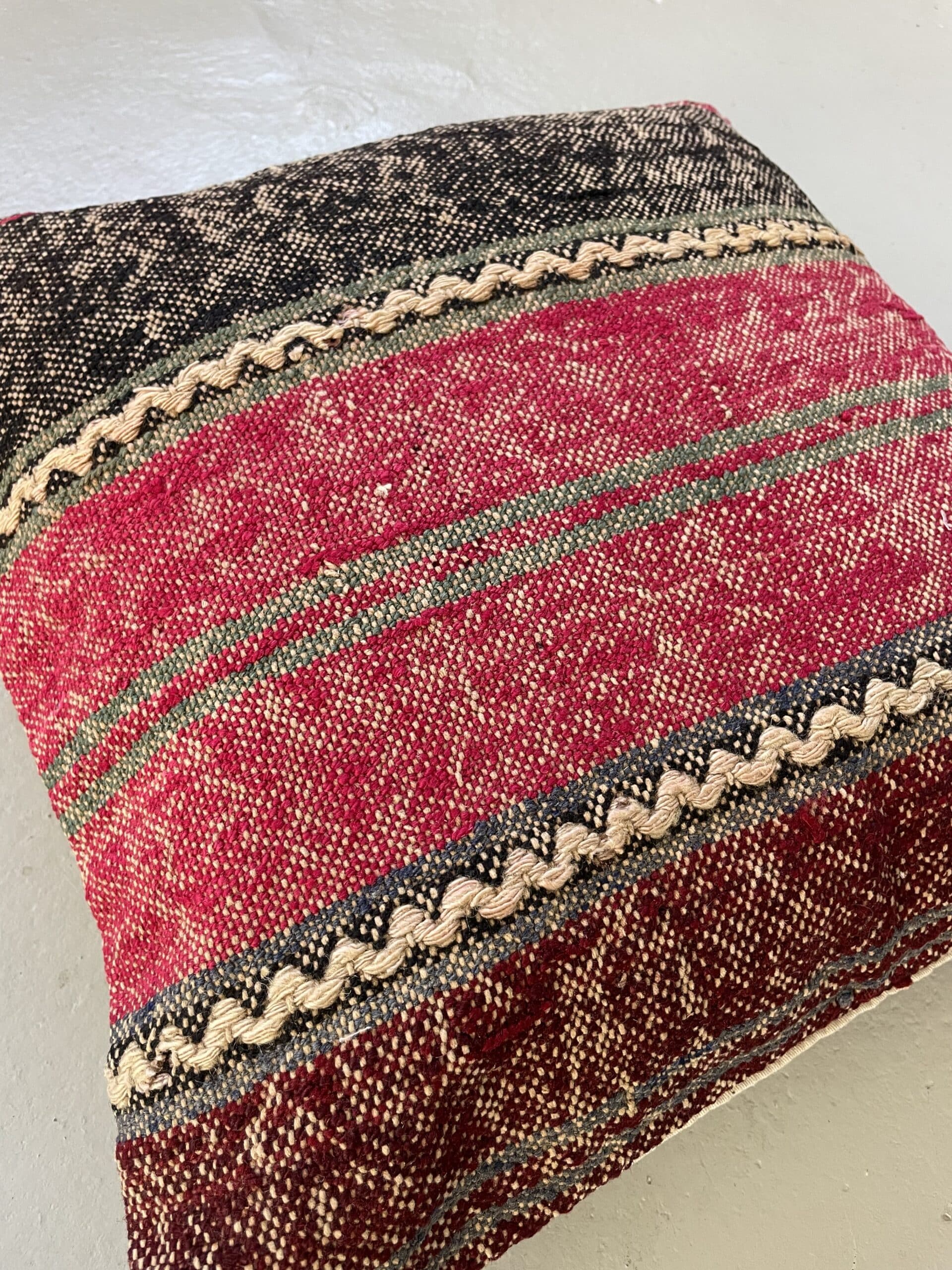 Alle vores kelimpuder er syet af vintage kelimtæpper, som grundet slid ikke er brugbare som tæpper længere – men til gengæld kan man nu sy de smukkeste puder af dem.