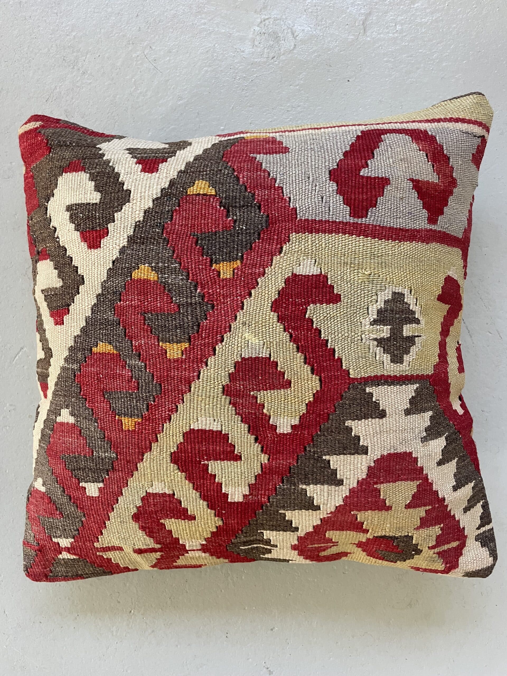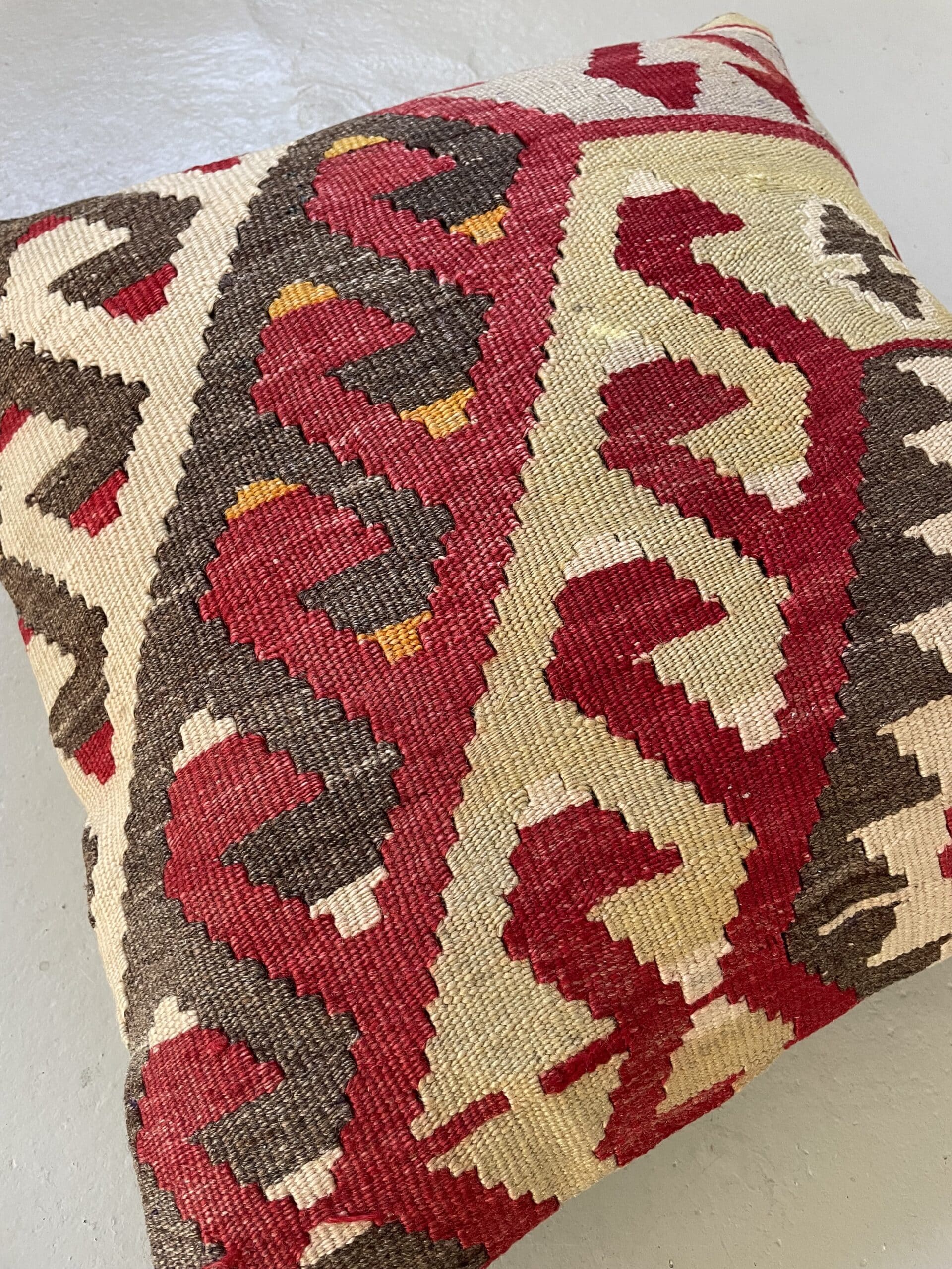 Alle vores kelimpuder er syet af vintage kelimtæpper, som grundet slid ikke er brugbare som tæpper længere – men til gengæld kan man nu sy de smukkeste puder af dem.