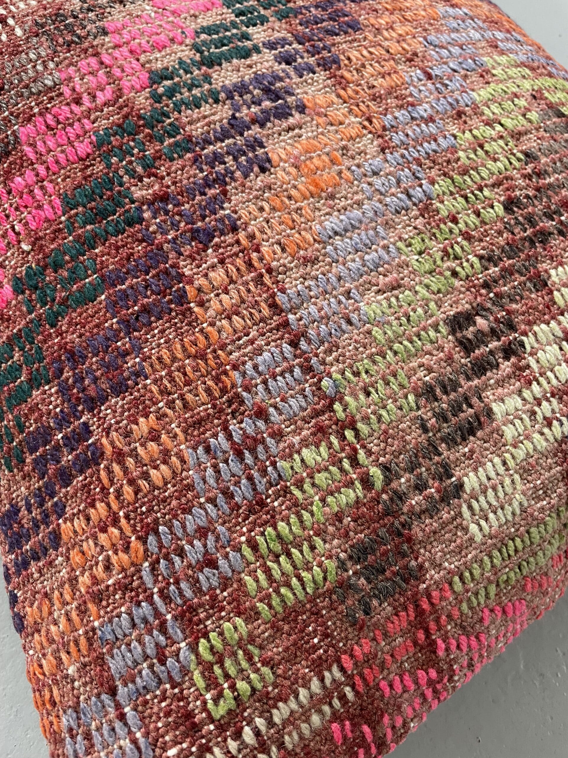 Alle puderne i kelim er syet op af gamle vintage kelimtæpper – en super form for genbrug.