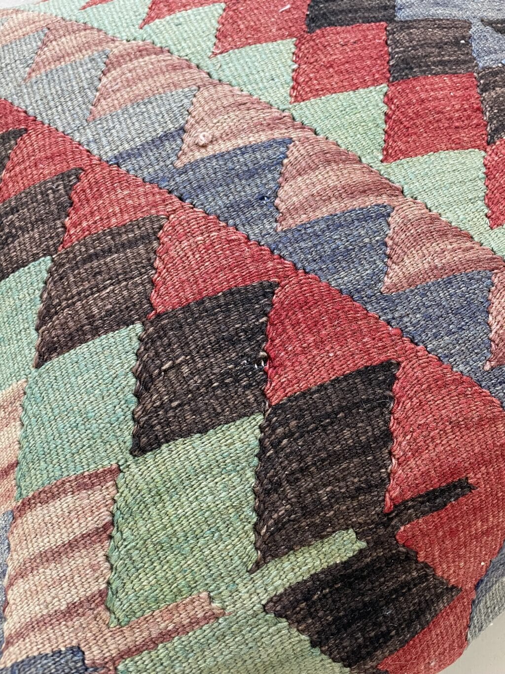 Alle vores kelimpuder er syet af vintage kelimtæpper fra Tyrkiet. Det gør, at alle puderne er unikke og du finder altså ikke to puder, som er ens.
