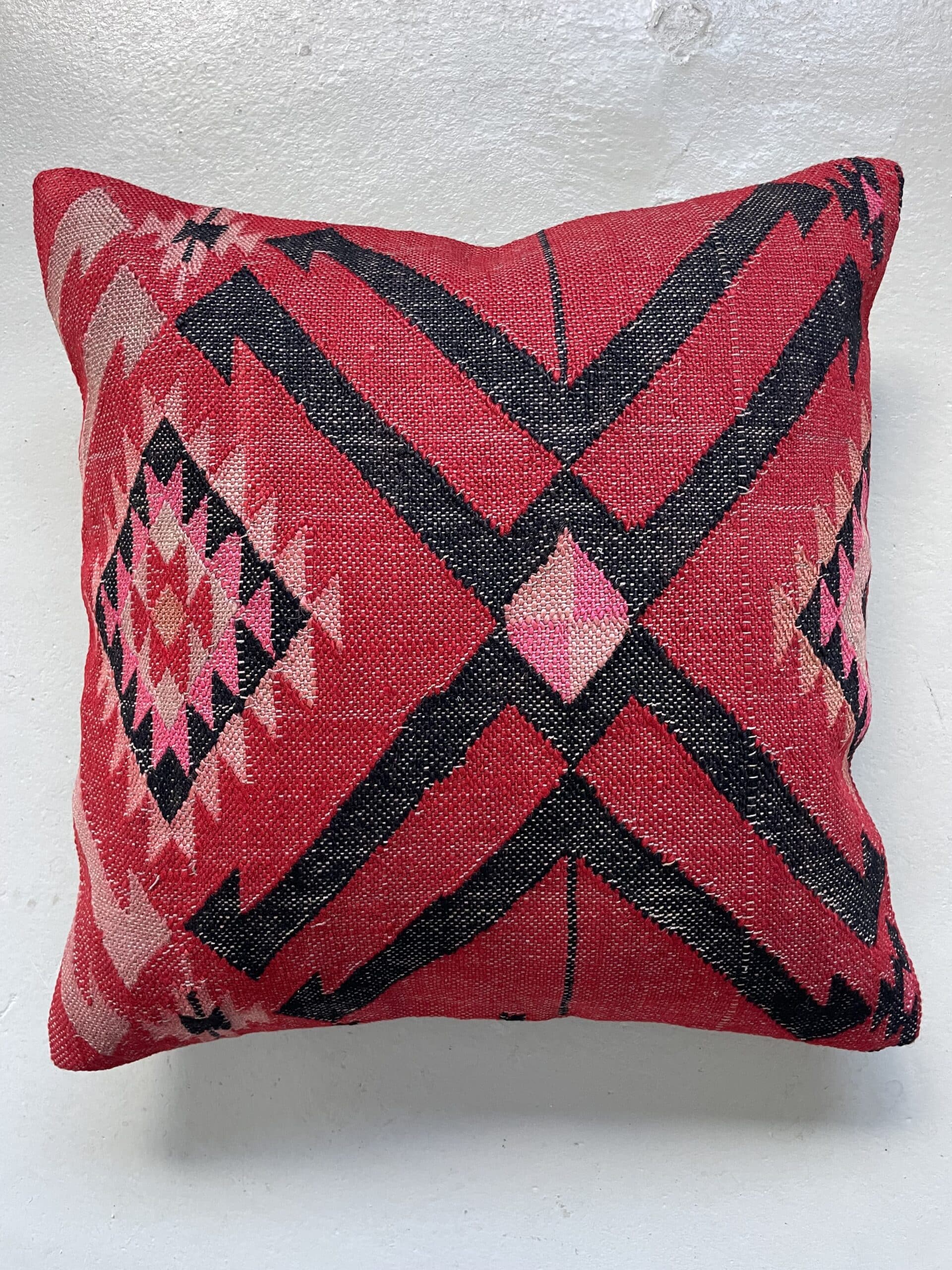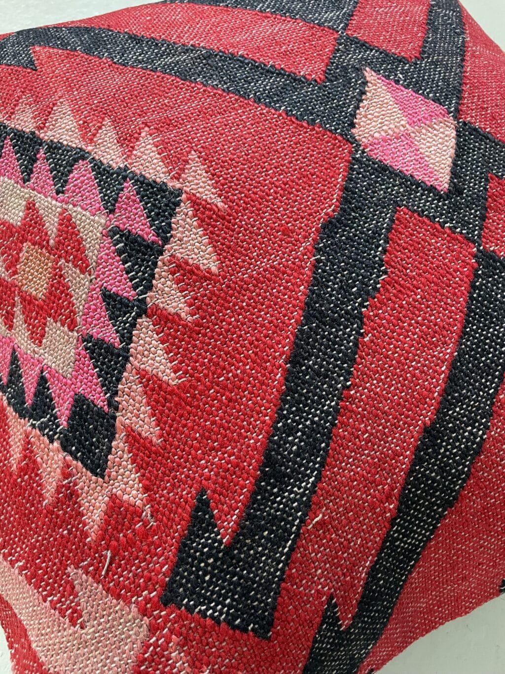 Skønneste røde kelimpude med et helt særligt mønster.