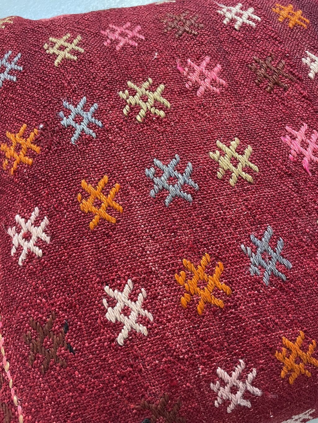 Alle vores kelimpuder er syet af vintage kelimtæpper fra Tyrkiet – det gør, at alle puderne er unikke og du finder altså ikke 2 puder som er ens.