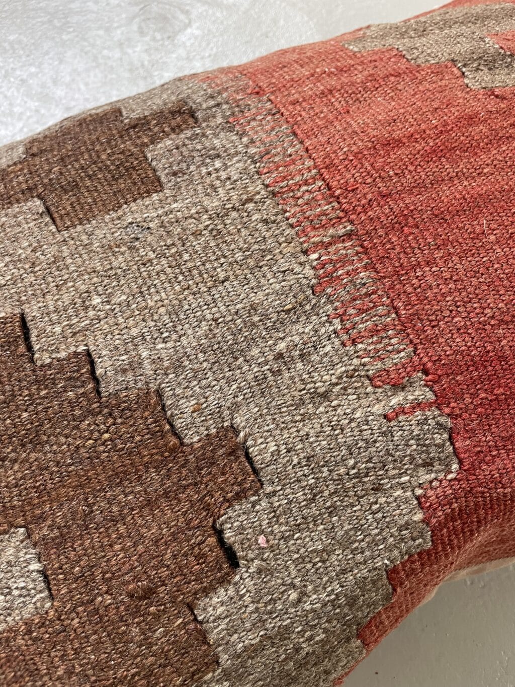 De mørke farver på denne kelimpude er så flotte sammen.