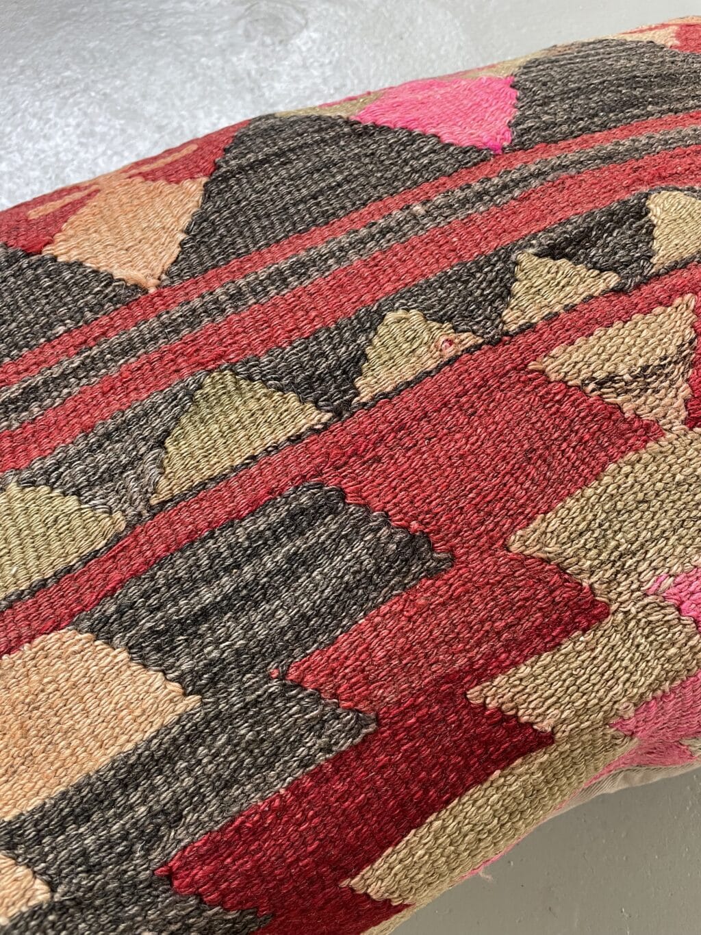 Se lige denne skønne kelimpude. Vi er helt med den pinke farve, som lige pifter puden lidt ekstra op.