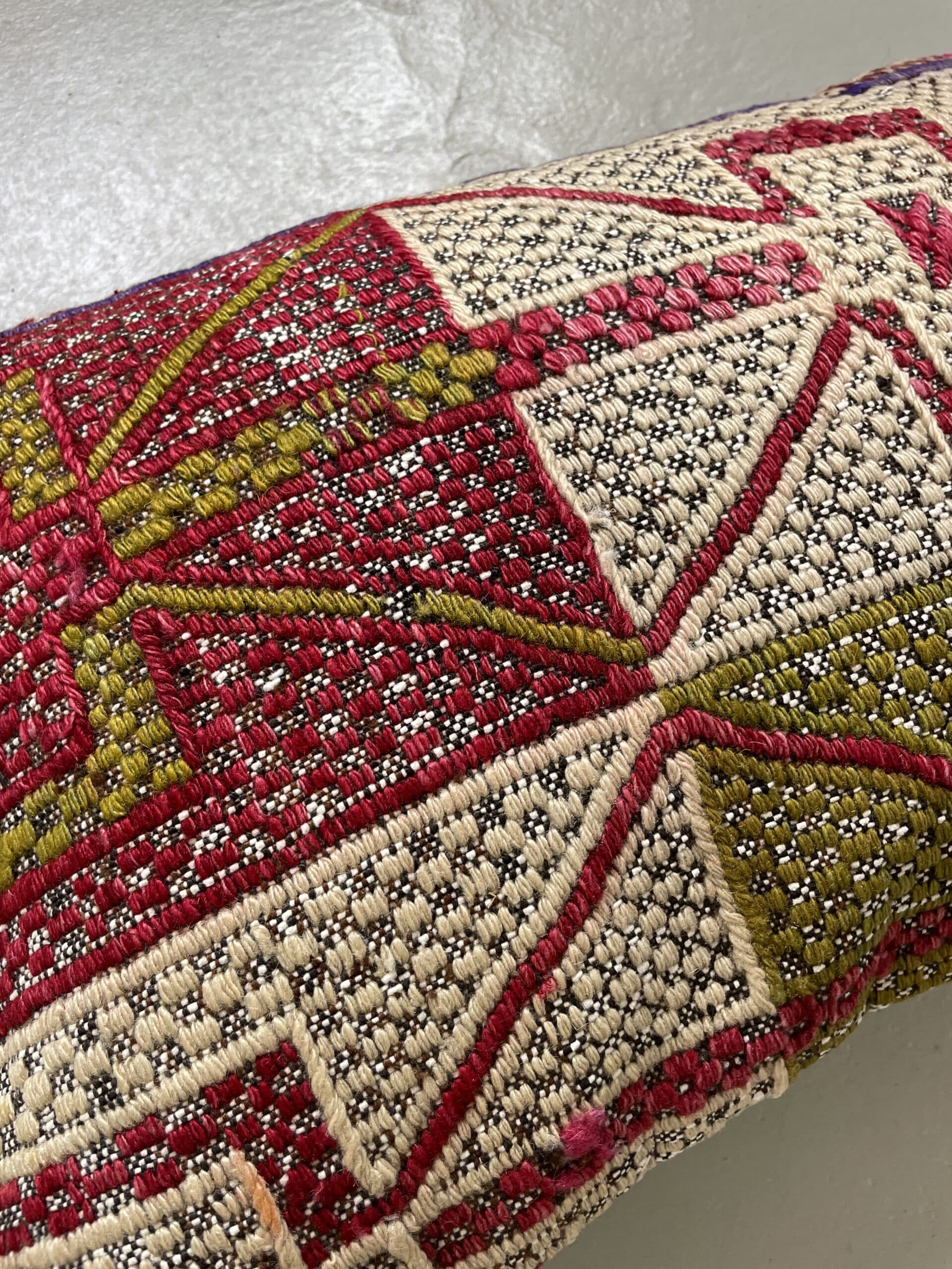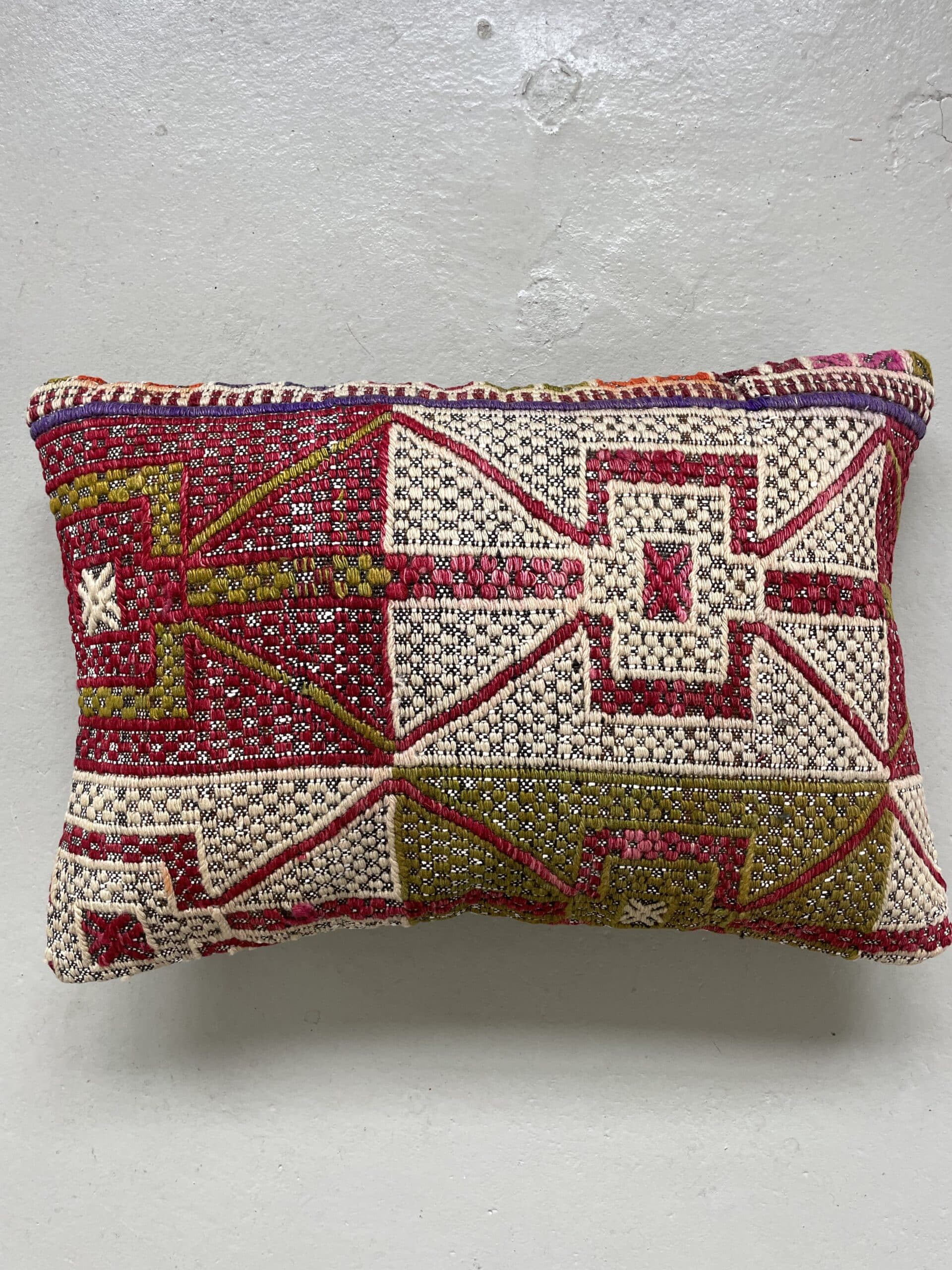 Vi har fundet en bunke smukke vintage puder, syet op af gamle kelimtæpper – hver pude er unika, så du får præcis den pude du ser her på billedet.