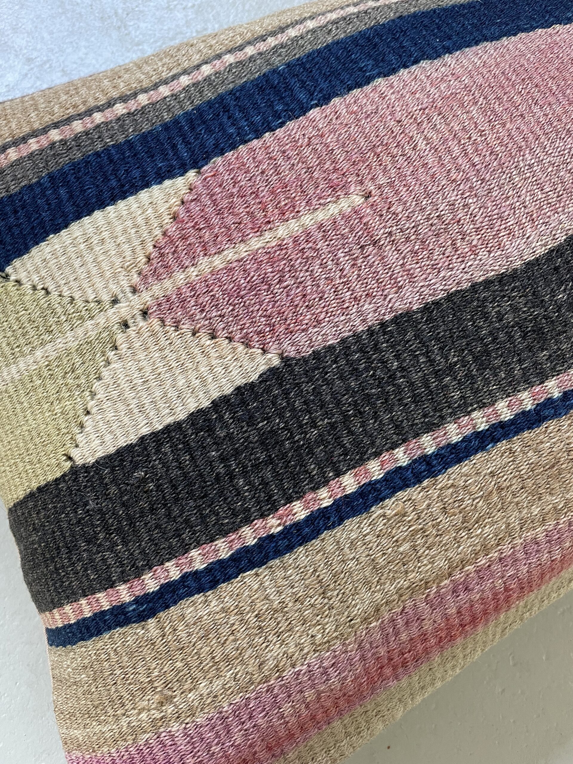 Vi har fundet en bunke smukke vintage puder, syet op af gamle kelimtæpper. Hver pude er unika, så du får præcis den pude du ser her på billedet.