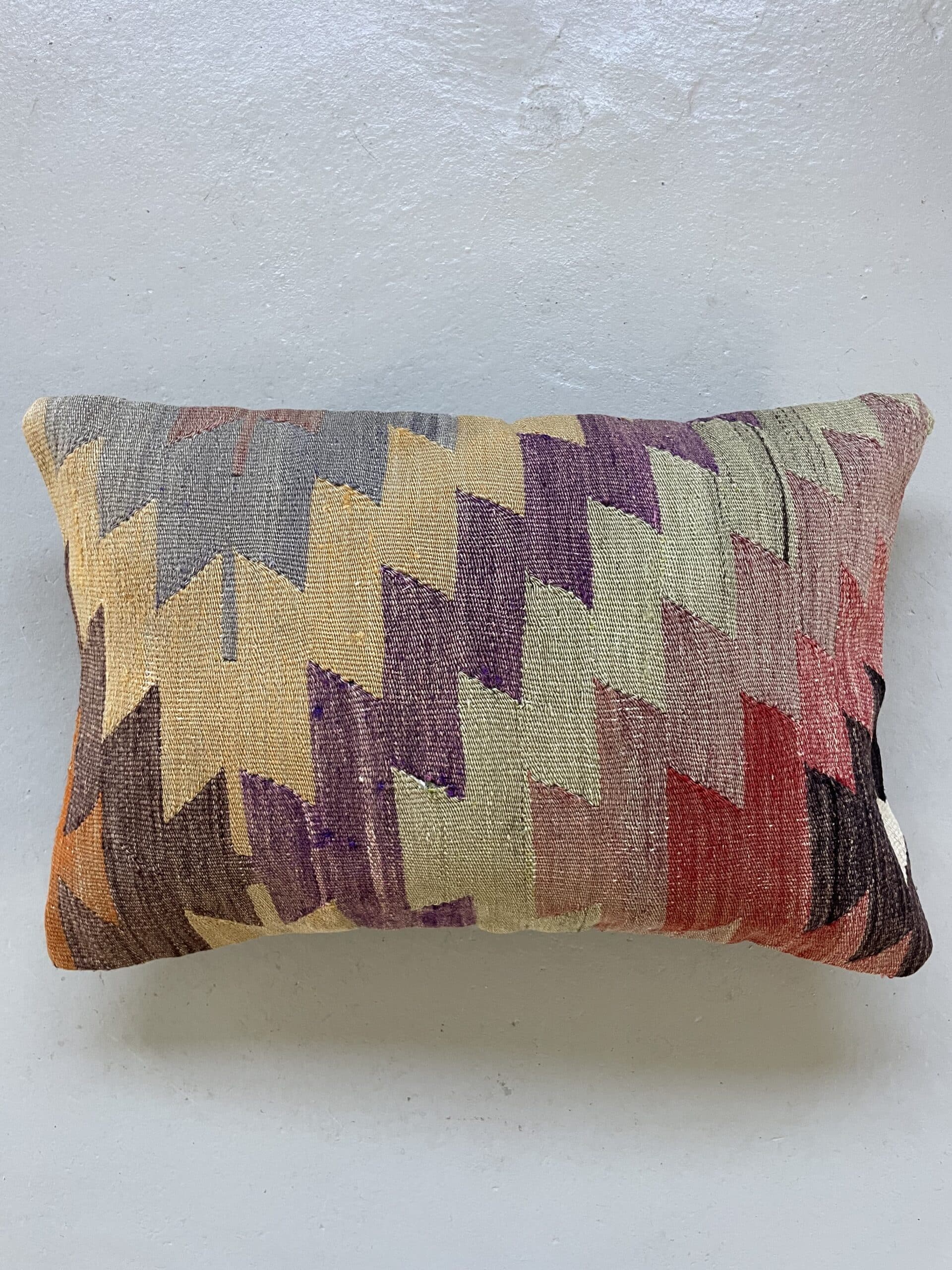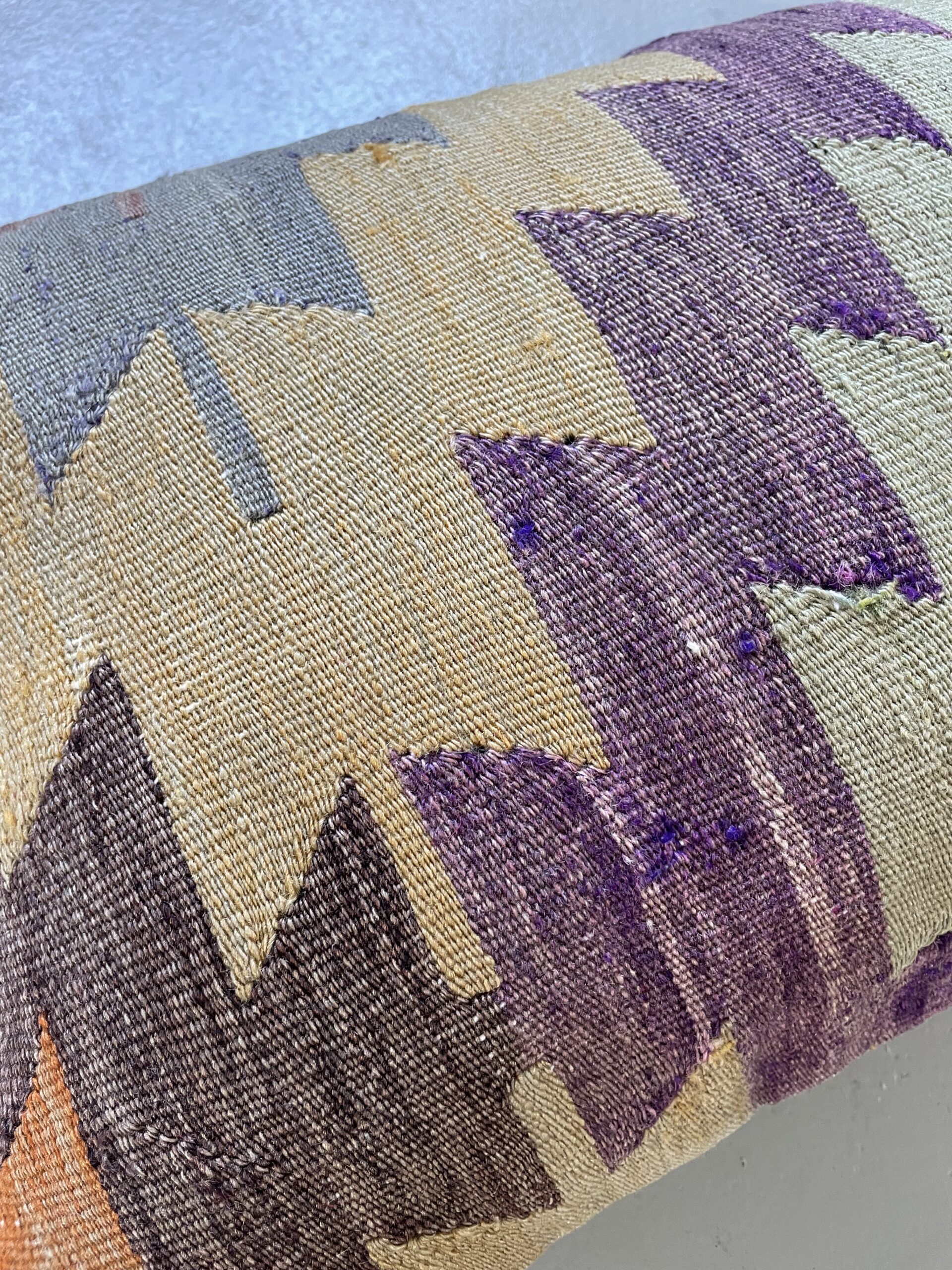 Vi har fundet en bunke smukke vintage puder, syet op af gamle kelimtæpper – hver pude er unika, så du får præcis den pude du ser her på billedet.