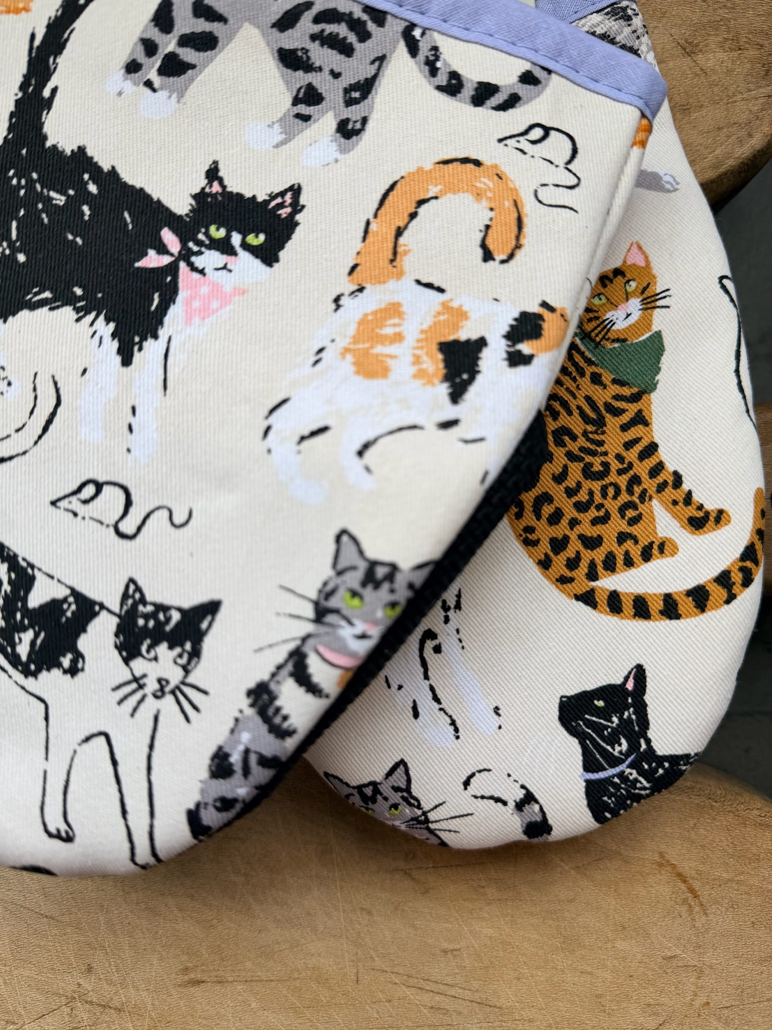 Smarte neopren køkkenhandsker med flot katte print.