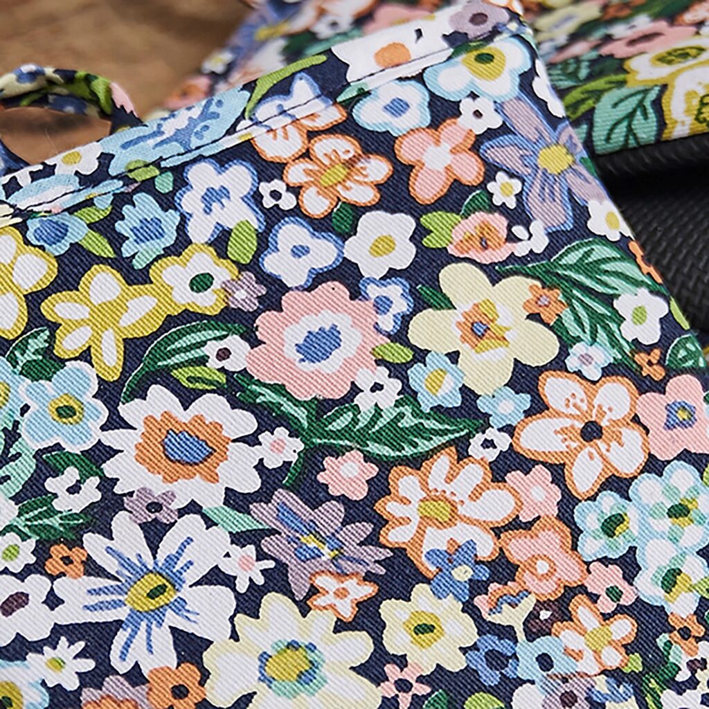 De er nemme at stikke hænderne ned i og her finder du hurtigt ud af, at det fine blomsterprint går igen inden i handskerne..