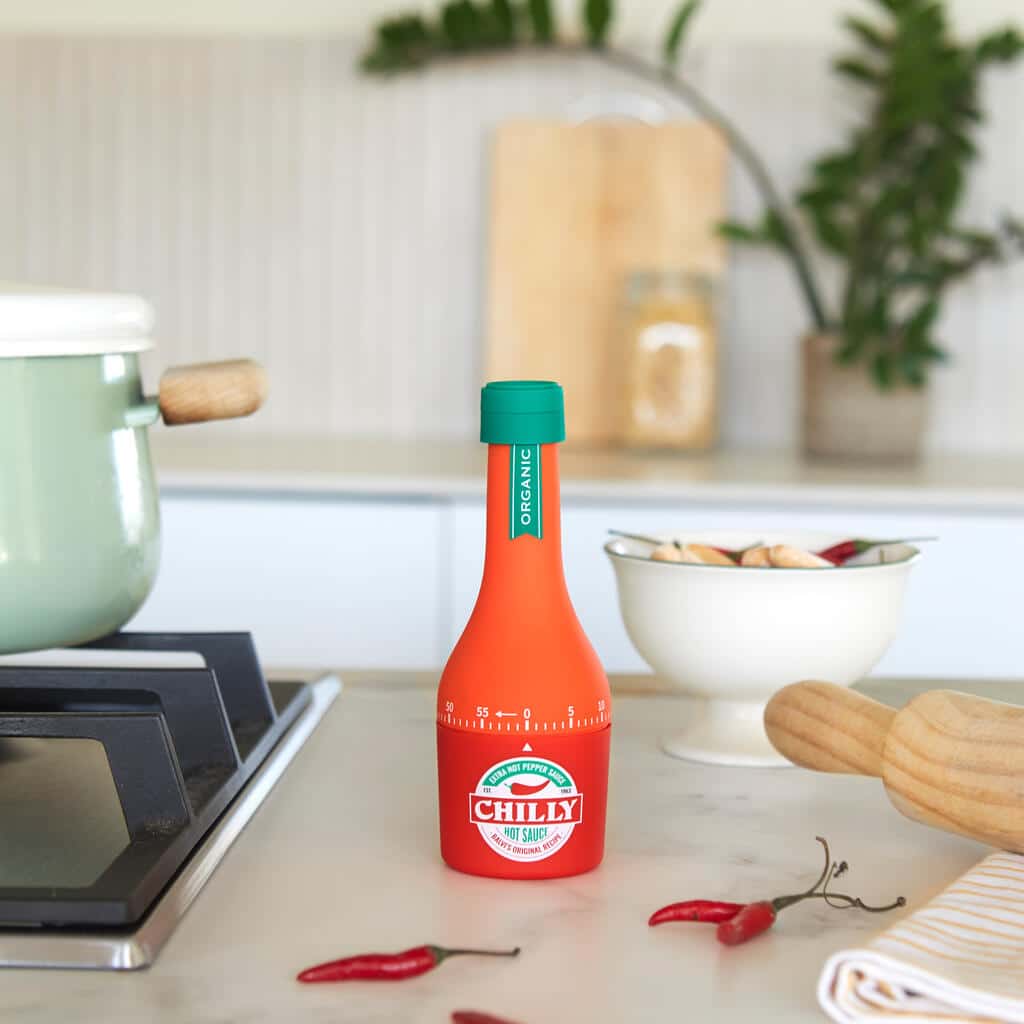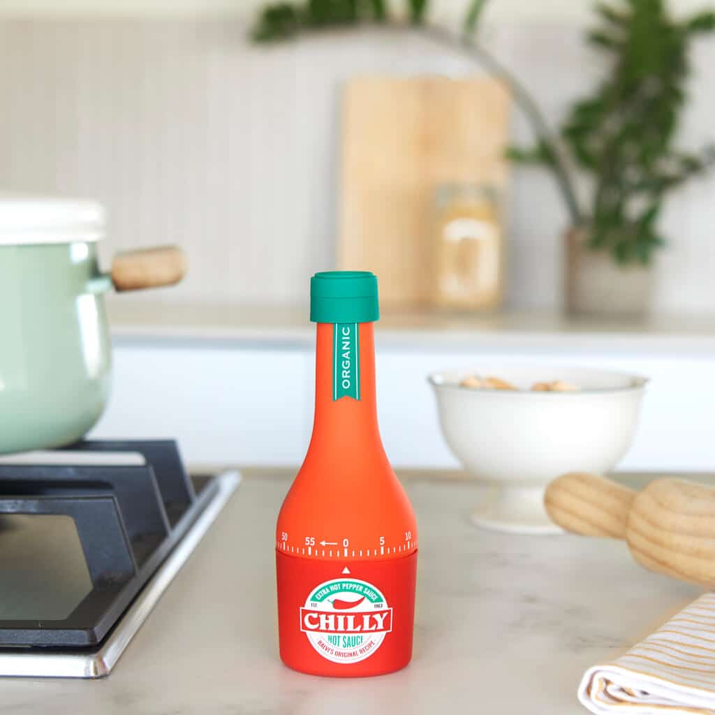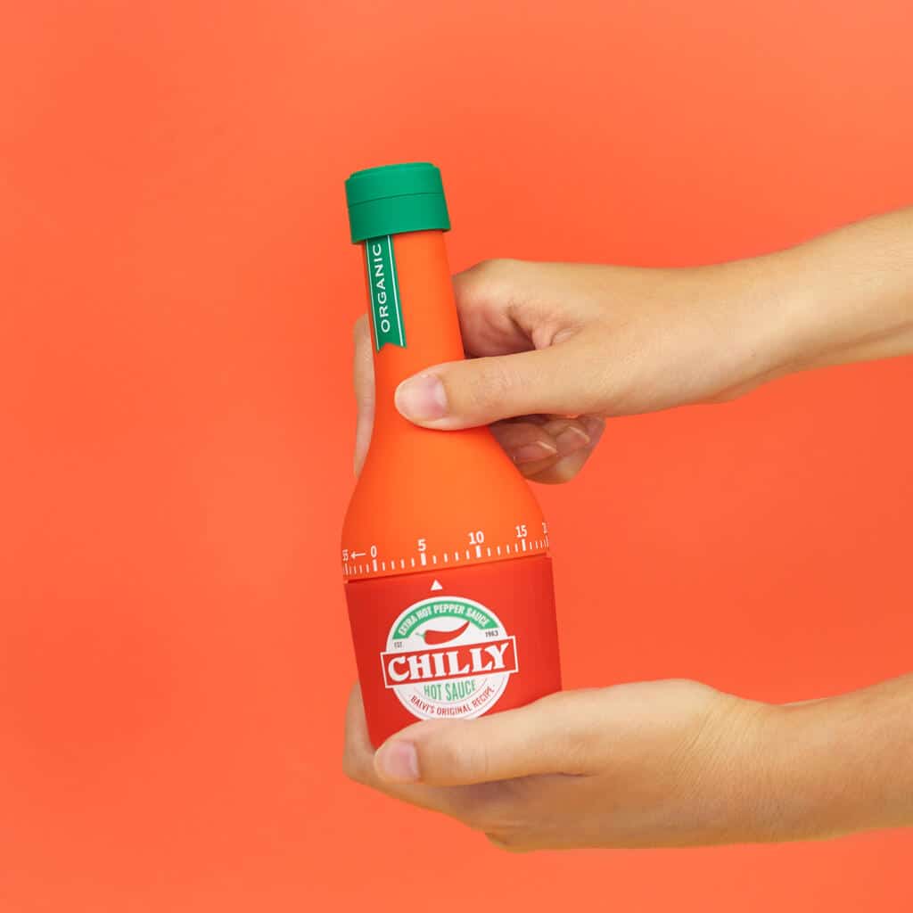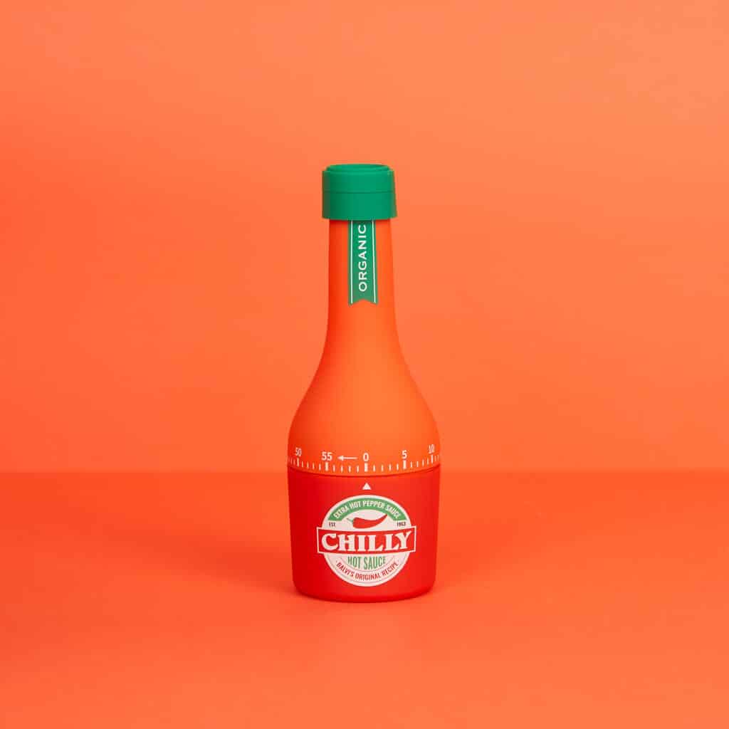 Æggeuret er lavet så det ligner en chili sauce – det er da skægt!