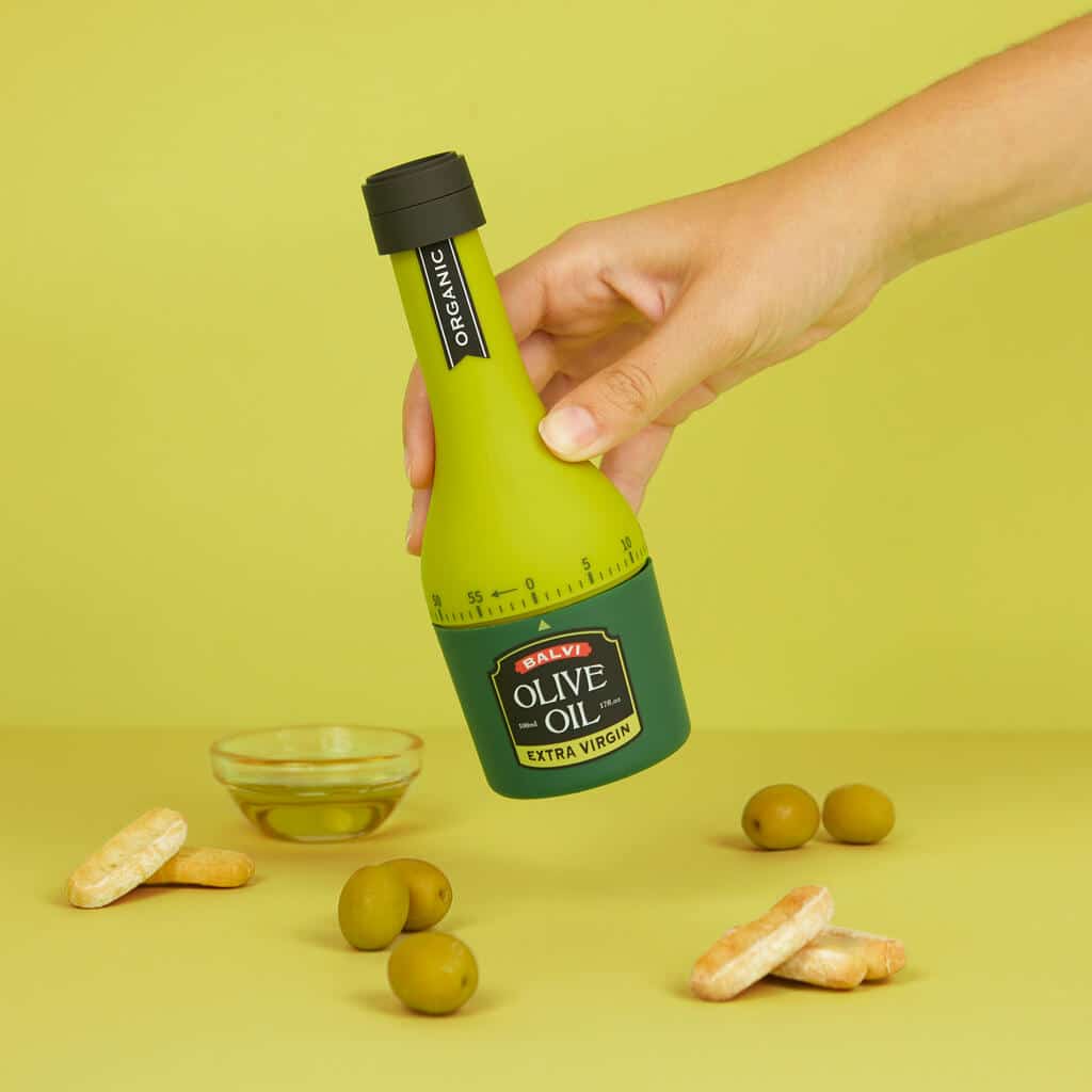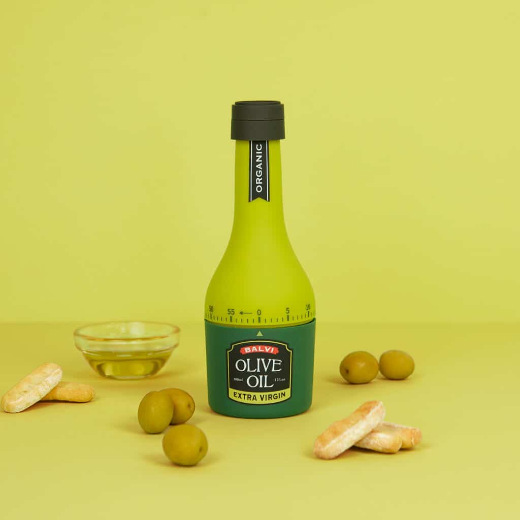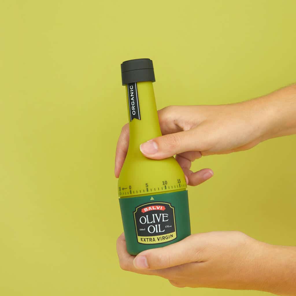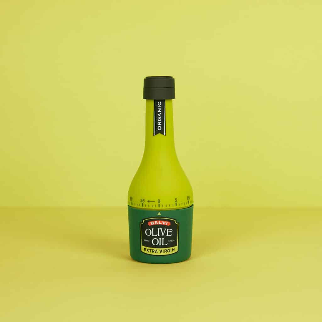 Æggeuret er lavet så det ligner oliven olie – det er da skægt!