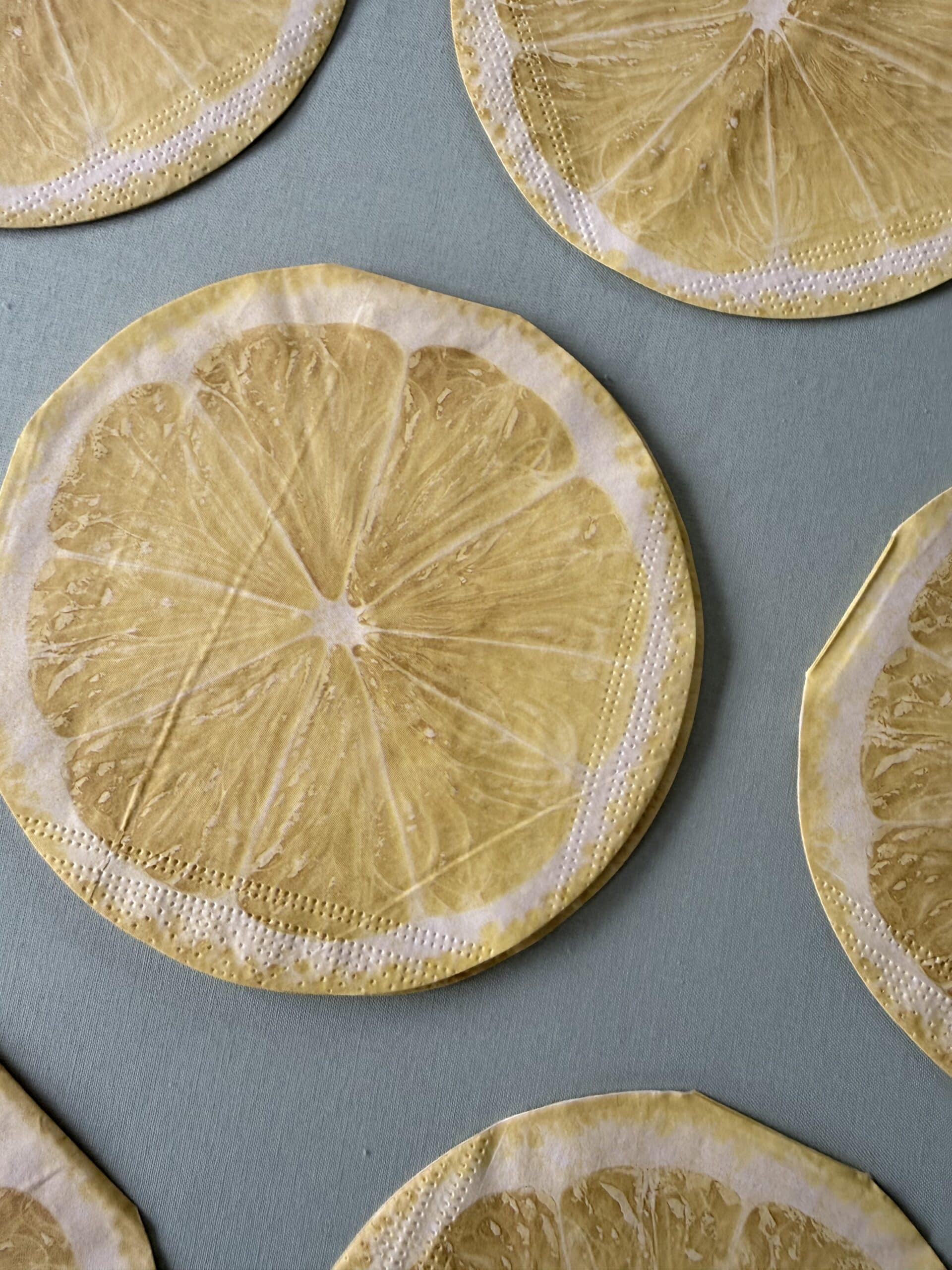 De skønneste citron servietter i rund facon til bordopdækningen.