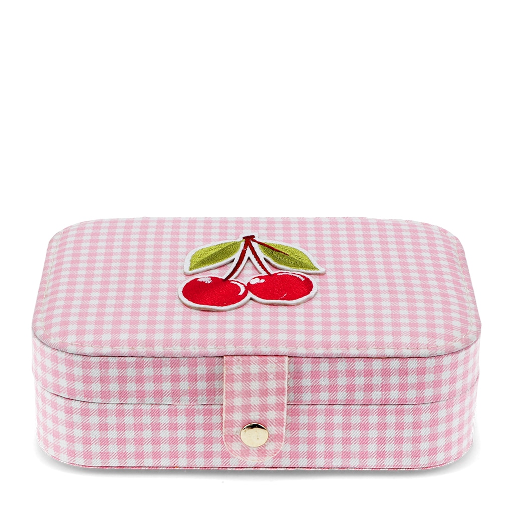 Helt fantastisk smykkeskrin i det fineste gingham stof og med et kirsebær på toppen.
