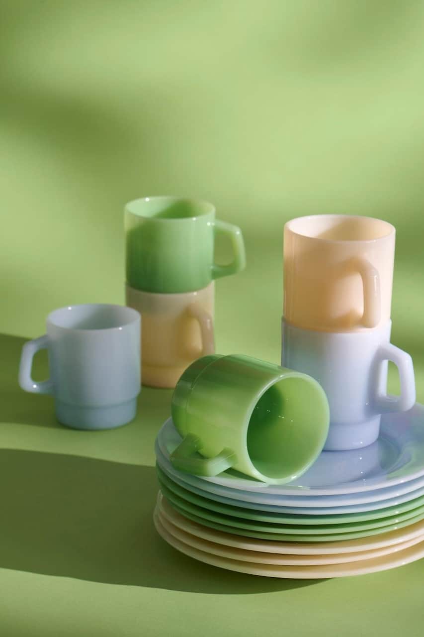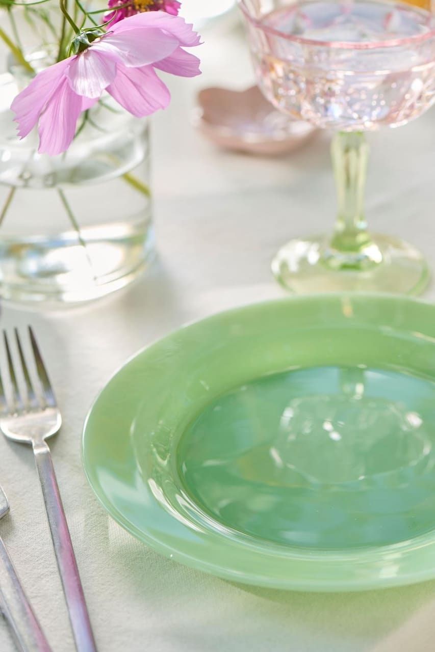 Den flotte, bløde, pistaciegrønne pastelnuance giver tallerkenen et moderne udtryk, som vil ophøje en hver borddækning – brug dem til hverdag og fest.