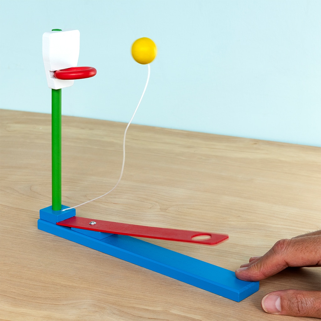Sjovt basketballspil i træ, hvor det handler om at skyde den lille træbold i kurven ved at affyre bolden.