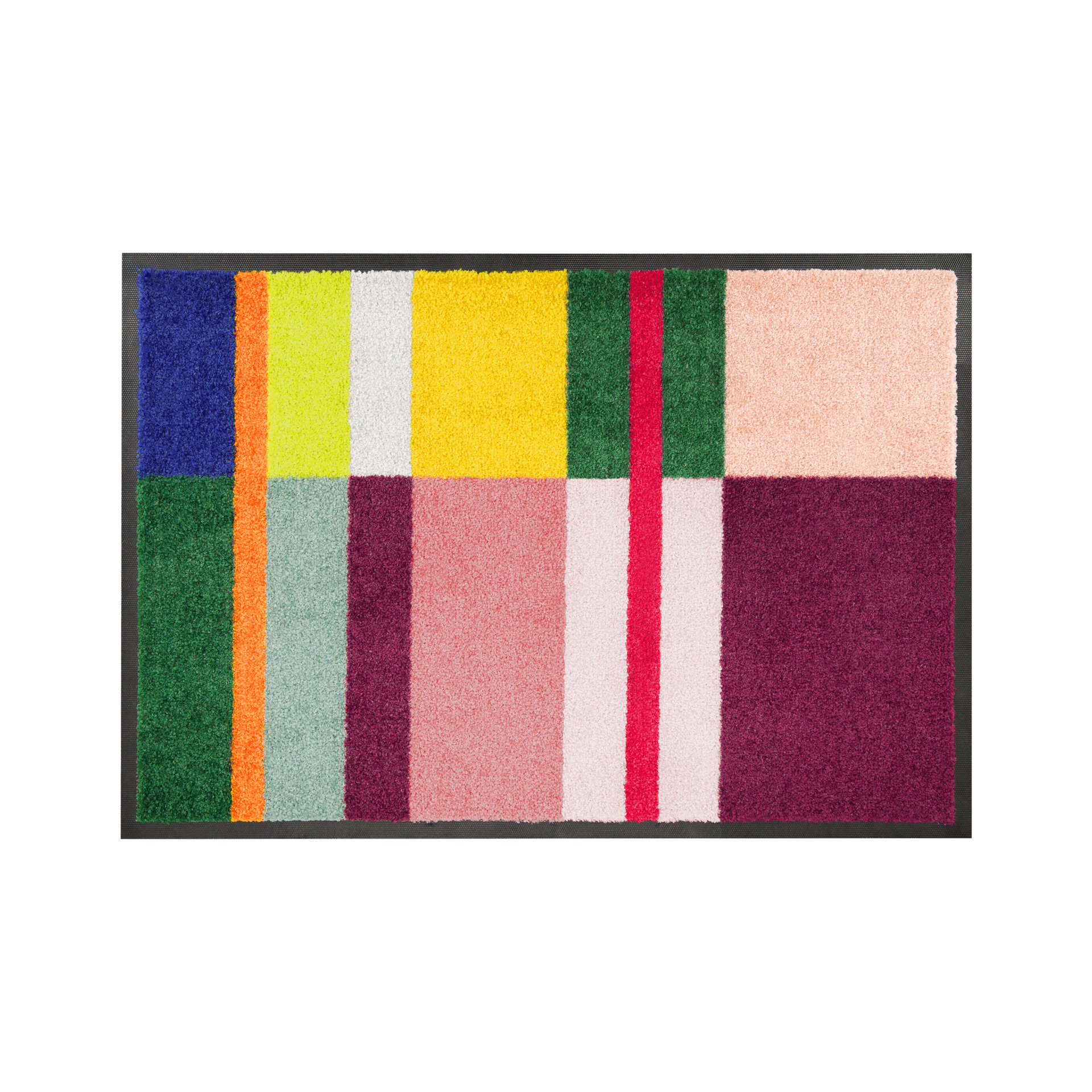 Smuk og farverig dørmåtte med farverigt grafisk mønster som passer så flot sammen.