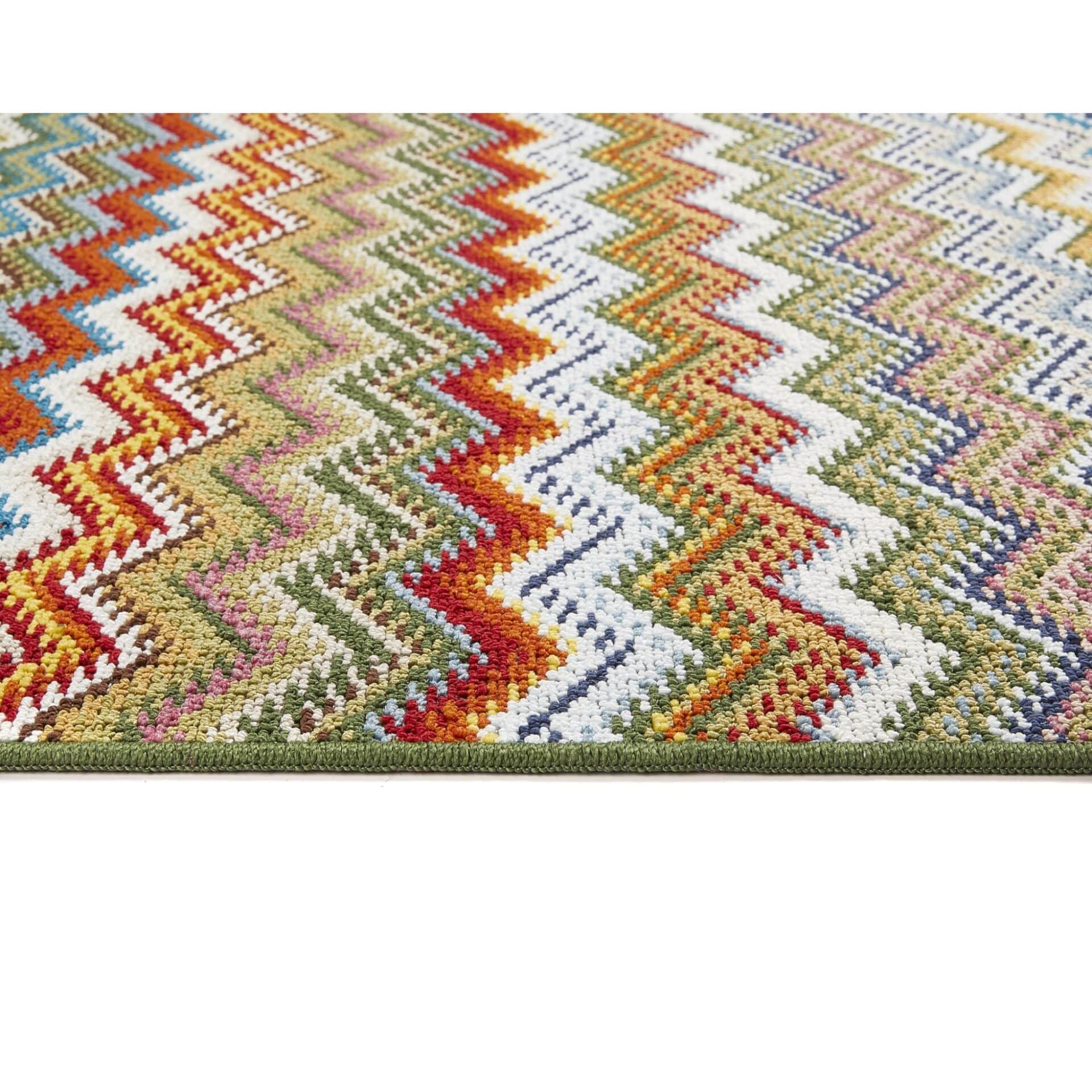 Vaskbar løber med et smuk zig zag mønster i grønne, røde, blå, gule og orange farver.
