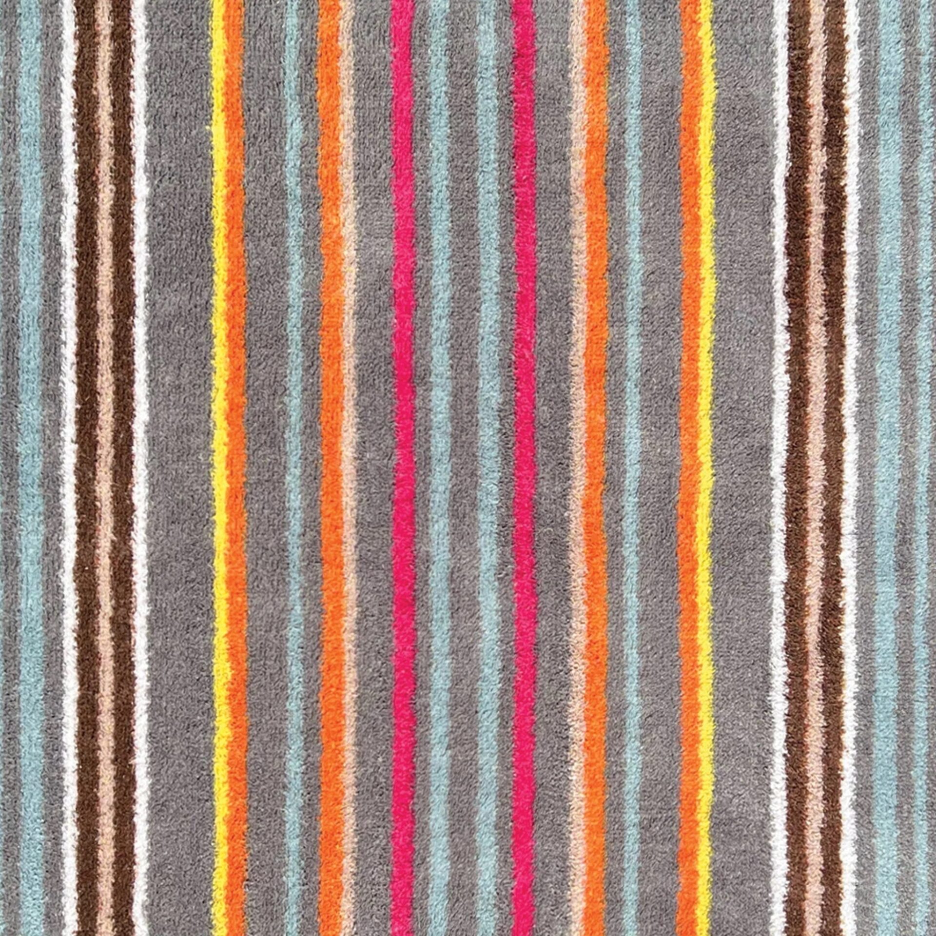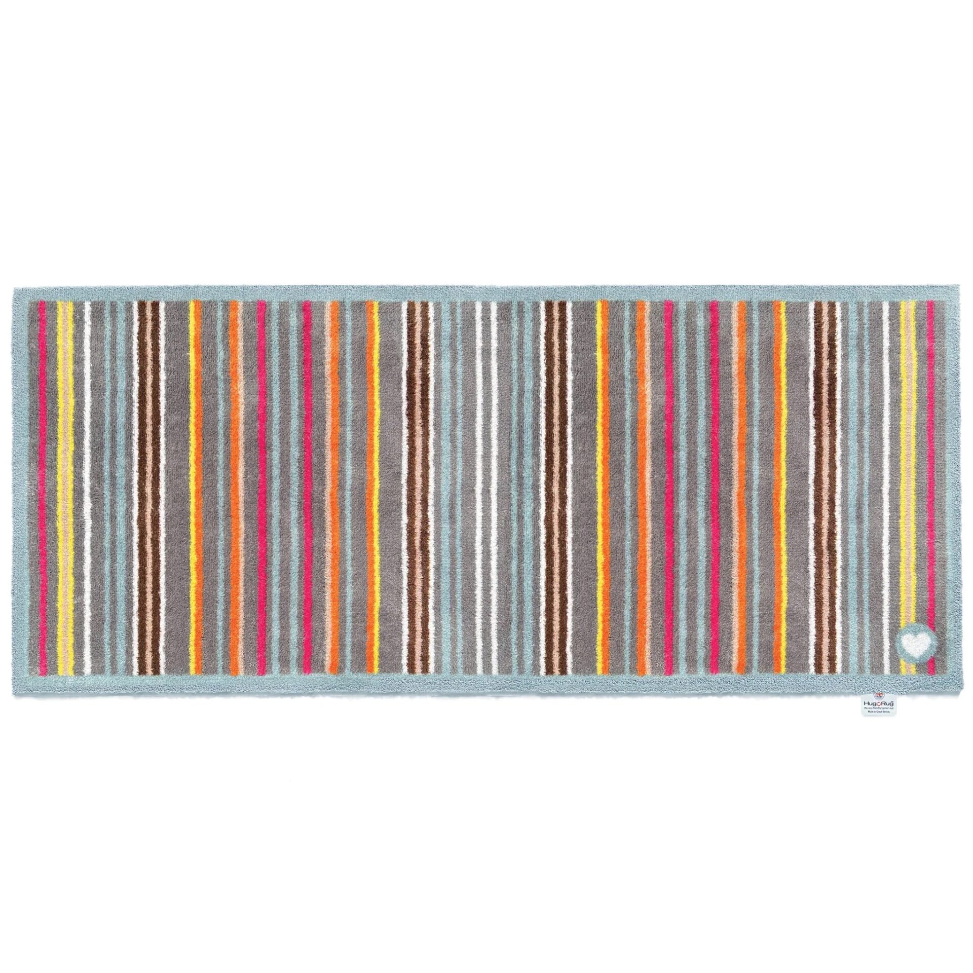 Vaskbar løber i et smuk stribet design i grå, pink, orange, gule, lyseblå og brune farver.