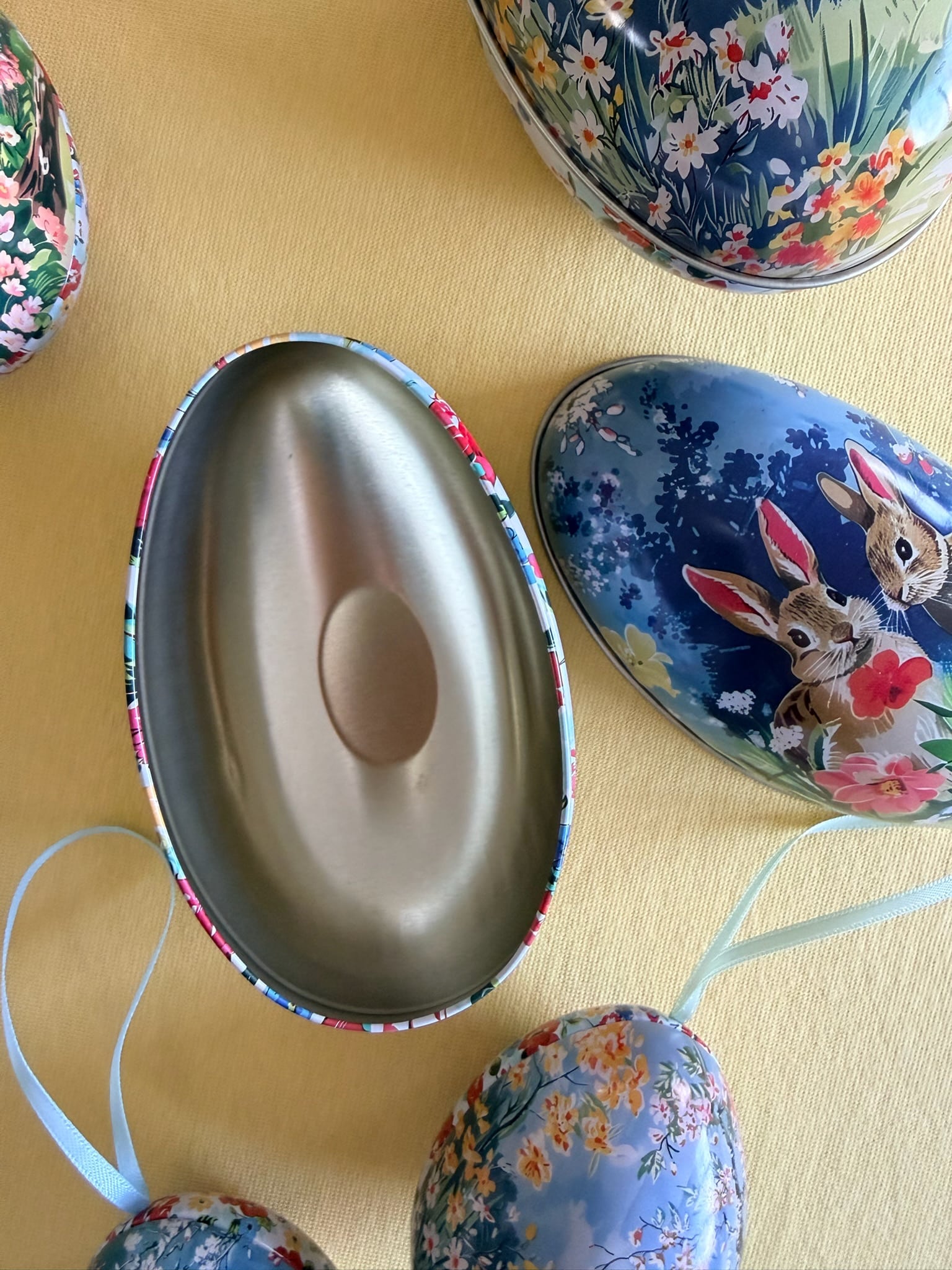 Påskeægget er fremstillet i metal og kan nemt skilles på midten, så det kan fyldes med lækkert påskeslik, små overraskelser eller personlige gaver.