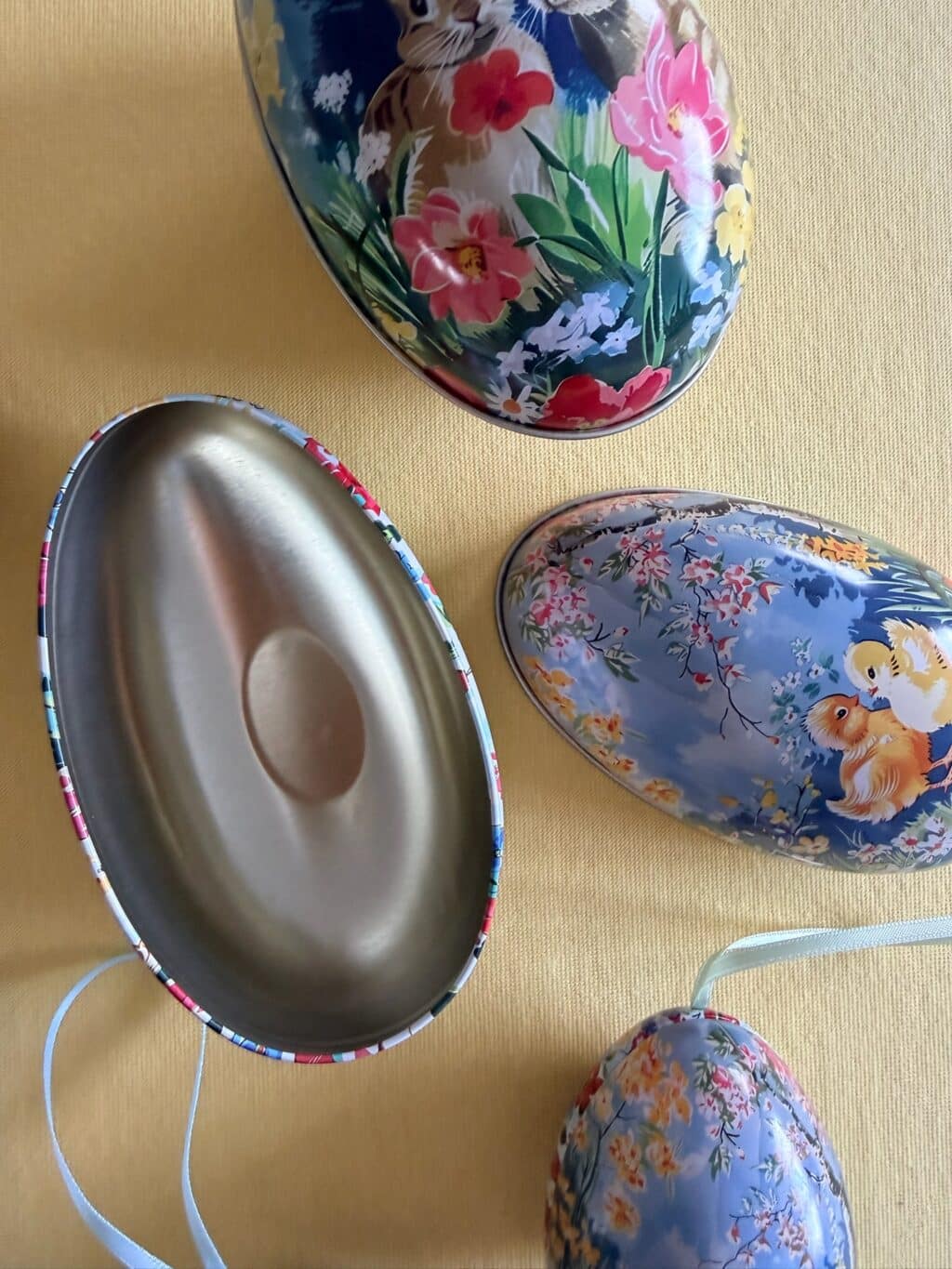 Påskeægget er fremstillet i metal og kan nemt skilles på midten, så det kan fyldes med lækkert påskeslik, små overraskelser eller personlige gaver.